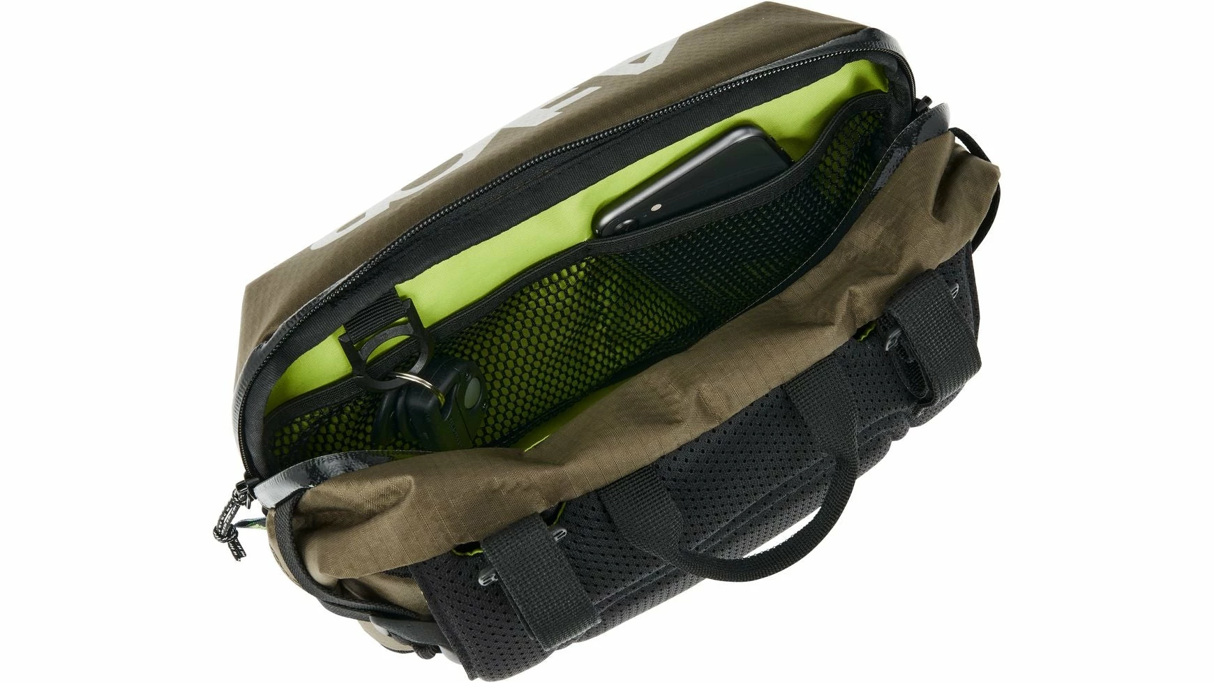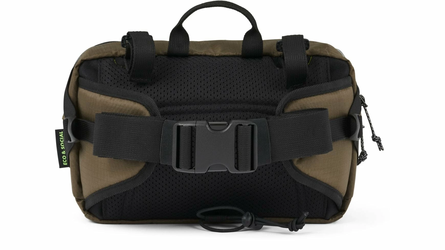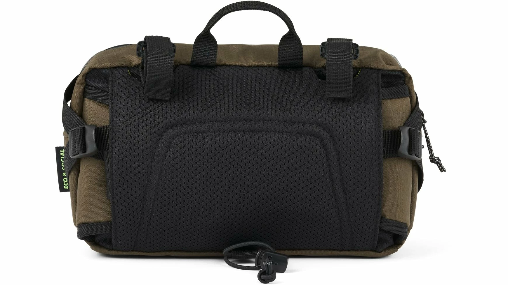 Die Bar Bag ist ein cooler und durchdachter Begleiter für den City-Alltag, besonders wenn du viel mit dem Rad unterwegs bist. Der Oberstoff besteht aus 100 % recyceltem PET mit einer Wassersäule von 13.000 mm. Ein Befestigungssystem hält die Lenkertasche während der Fahrt am Lenker. Der versteckbare Gurt bleibt verstaut, bis es Zeit ist, zu Fuß weiterzugehen. Tragen Sie die Tasche um die Hüfte oder um die Schultern.