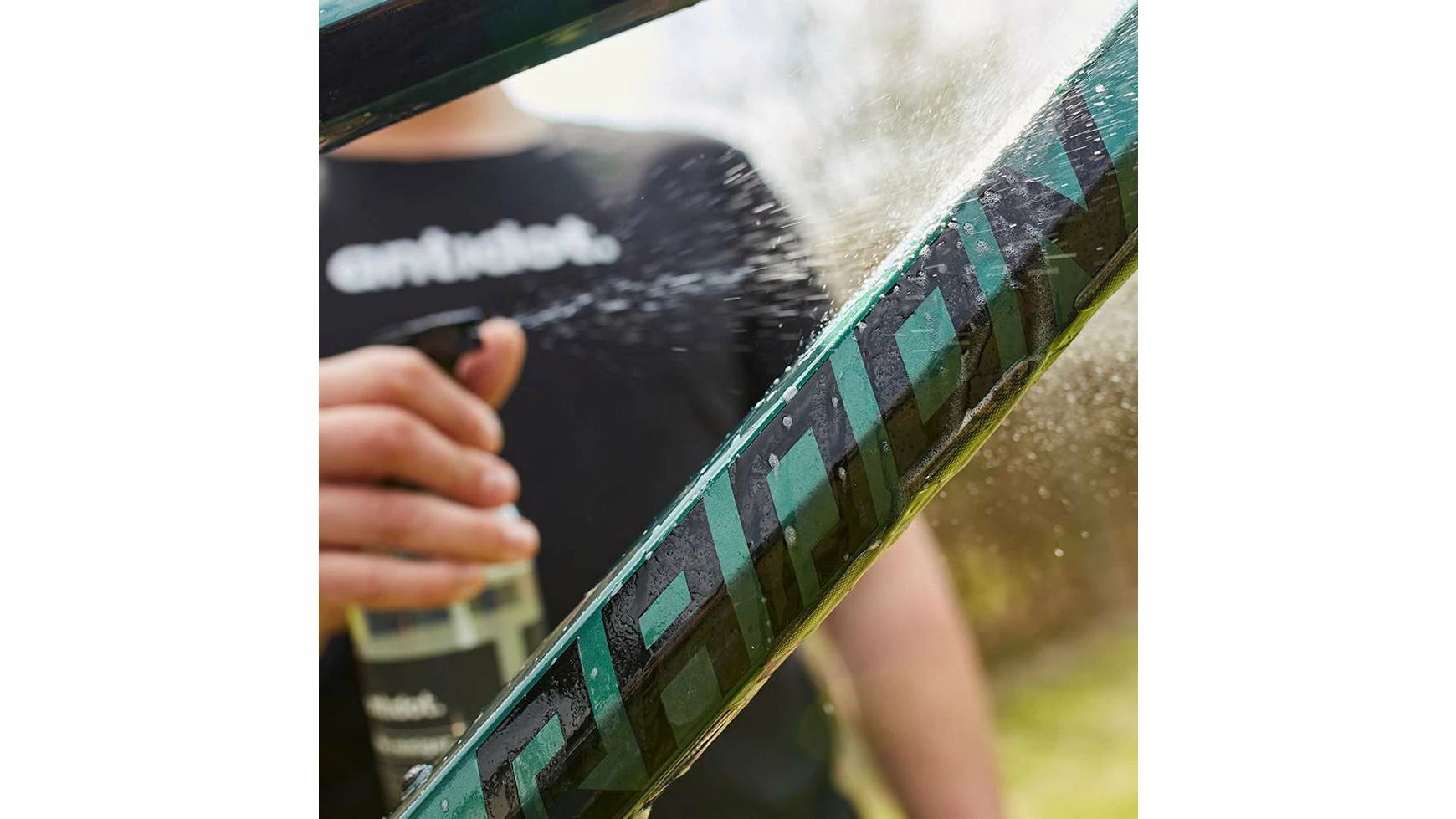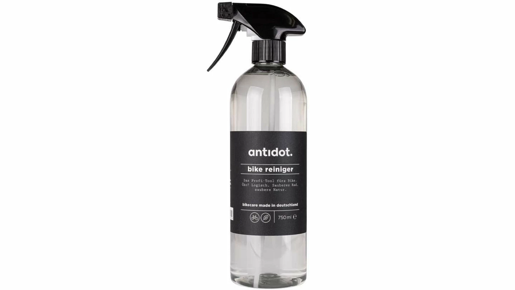 antidot. bike reiniger ist ein biologischer und nachhaltiger Reiniger für jeden Radtyp. Er besteht nachweislich zu 100 % aus biologisch abbaubaren Wirkstoffen und >95 % der Inhaltsstoffe sind natürlicher Art. Abgefüllt in einer Flasche aus 100 % recyceltem PET (Polyethylenterephthalat) erhätlich. Aus Transportsicherheitsgründen ist der bike reiniger beim Versand mit einem Schraubdeckel verschlossen. Der Sprühkopf wird der Sendung beigelegt und kann ganz einfach auf die Flasche geschraubt werden. Der bike reiniger ist ein Kraftreiniger mit bester Reinigungsleistung auf Wasserbasis und ist frei von Lösemitteln, Farb-, Duft- und Konservierungsstoffen. Er greift keine Oberflächen wie Lack, Metall, Gummi oder Carbon an und kann bedenkenlos an jedem E-Bike eingesetzt werden. Gut fürs Rad. Gut für die Natur. 100 % Made in Deutschland.