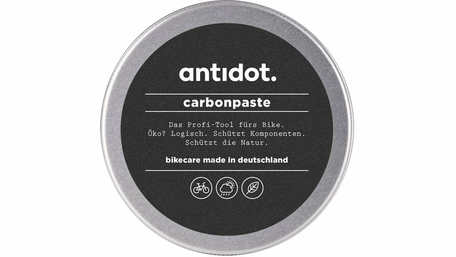 antidot carbonpaste ist eine biologische und nachhaltige Montagepaste speziell für Carbonteile. Es besteht nachweislich zu 100 % aus biologisch abbaubaren Wirkstoffen und zu 90% aus nachwachsenden Rohstoffen. Verpackt in einer recycelbaren Aluminiumdose. Die Carbonpaste ist frei von Lösemitteln, Farb-, Duft- und Konservierungsstoffen. Sie greift keine Oberflächen wie Lack, Metall oder Gummi an. Nicht geeignet zur Montage von Kugellagern. Kann bedenkenlos an jedem E-Bike eingesetzt werden. Gut fürs Rad. Gut für die Natur. 100 % Made in Deutschland!