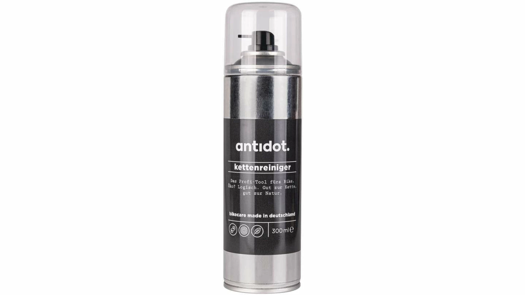 antidot kettenreiniger ist ein nachhaltiger und umweltfreundlicher Antriebsreiniger. Er besteht, soweit technisch möglich, aus biologisch abbaubaren Wirkstoffen und wird in einer praktischen 300ml Sprühdose geliefert. Der Kettenreiniger hat eine herausragende Reinigungskraft und ist vielseitig einsetzbar. Im direkten Vergleich zu anderen Kettenreinigern ist er deutlich ergiebiger und verdunstet schnell und rückstandsfrei. 100 % made in Deutschland. Pro-Tipp: Am besten wird der Reiniger, mit einem dahinter gehaltenen Tuch, direkt auf die Kette gesprüht und nach kurzer Einwirkzeit mit dem Tuch abgewischt. So spart ihr Reiniger und schützt andere Bauteile vor gelösten Schmierstoffen. Sprühnebel auf andere Bauteile solltet ihr immer vermeiden.