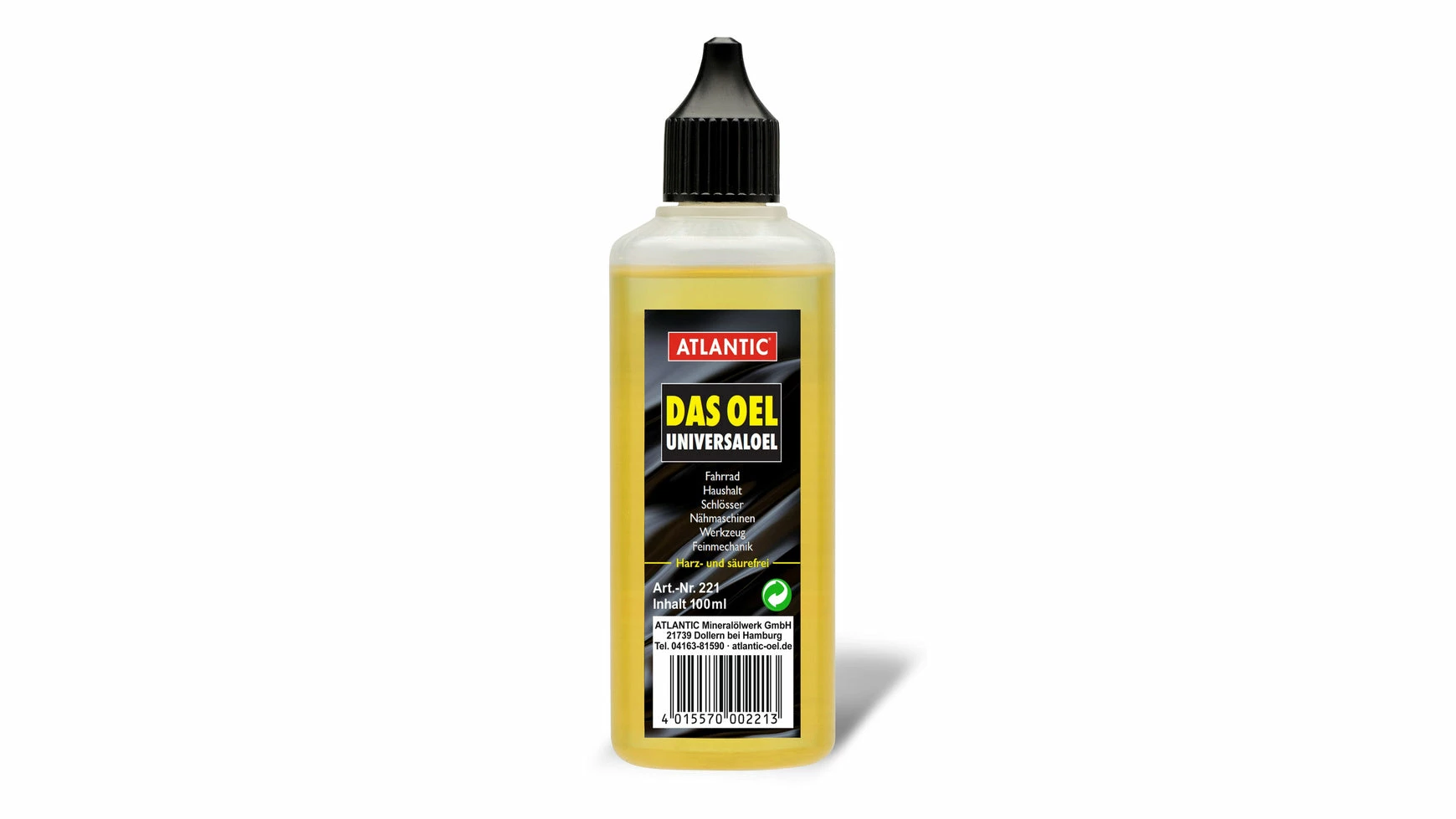 Ob Fahrrad, Haushalt, Garten, Schlösser, Scharniere, Nähmaschinen, Werkzeug oder Feinmechanik. DAS OEL ist universell einsetzbar für diverse Geräte und Maschinen. Es kommt überall zum Einsatz, wo es quietscht und klemmt. DAS OEL sollte inkeiner Werkstatt und keinem Haushalt fehlen. Es ist der berühmte Tropfen Öl, der so vieles leichter macht. DAS OEL ist silikon- harz- und säurefrei, paraffinbasisch und unlegiert. Das Reinheitsgebot ist patentiert. Durch die hohe Oxidationsstabilität bietet es ein sehr gutes Viskositäts-Temperaturverhalten und ist ebenfalls für den industriellen Bereich geeignet.