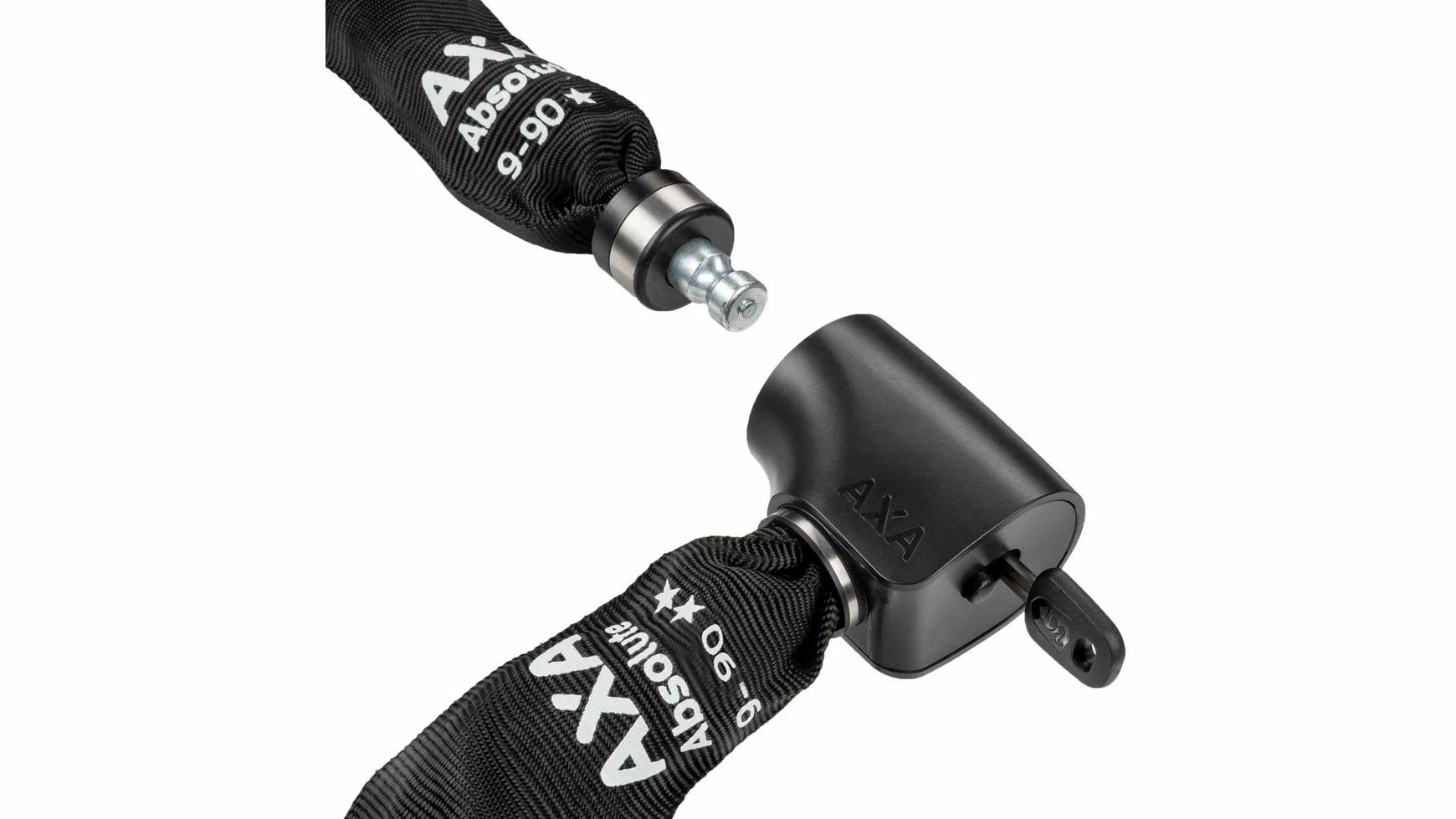 Die AXA Absolute 9-90 ist eine qualitativ hochwertige Kette, speziell entwickelt für den Gebrauch bei teureren Fahrrädern und für langfristiges Parken. Dieses Kettenschloss hat eine ausgezeichnete Qualität, wenn es um die Schneidestärke der Kettenglieder geht, außerdem ist der Zylinder gegen Bohrung geschützt. Der Zylinder wird mit einer Abdeckhaube geschützt, sodass Feuchtigkeit und Schmutz keinen direkten Zugang zum Zylinder haben. Dies wirkt sich positiv auf die Beständigkeit Ihres Schlosses aus. Die starke Polyesterhülle schützt Ihr Fahrrad gegen Beschädigung. Wenn es passiert, dass Sie Ihren Fahrradschlüssel verloren haben dann ist das kein problem. Mit dem internationalen Online Schlüsseldienst können Sie jederzeit einfach einen zusätzlichen Schlüssel bestellen. Diese Kette ist mit schicken Edelstahldetails ausgestattet, was jedes Fahrrad aufwertet. Der Absolute ist 90 cm lang, die Stahlglieder bestehen aus gehärtetem Stahl und der Durchmesser beträgt 9 mm.
