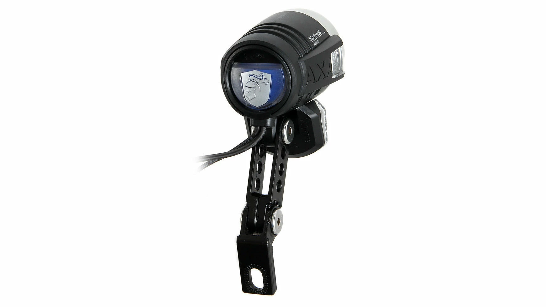 Der Axa Blueline 50 Switch Scheinwerfer besitzt eine überzeugende Leuchtkraft von 50 Lux für die zuverlässige Ausleuchtung Ihrer Fahrradwege. Zudem ist dieser hochwertige Frontscheinwerfer mit einem wasserabweisenden und stoßfesten Gehäuse ausgestattet. Ein Schalter zeigt Ihnen durch eine blaue Leuchte komfortabel an, dass der Scheinwerfer eingeschaltet ist. Die Montage des Axa Blueline 50 Switch Fahrrad-Scheinwerfers erfolgt dabei an der Gabelbrücke.