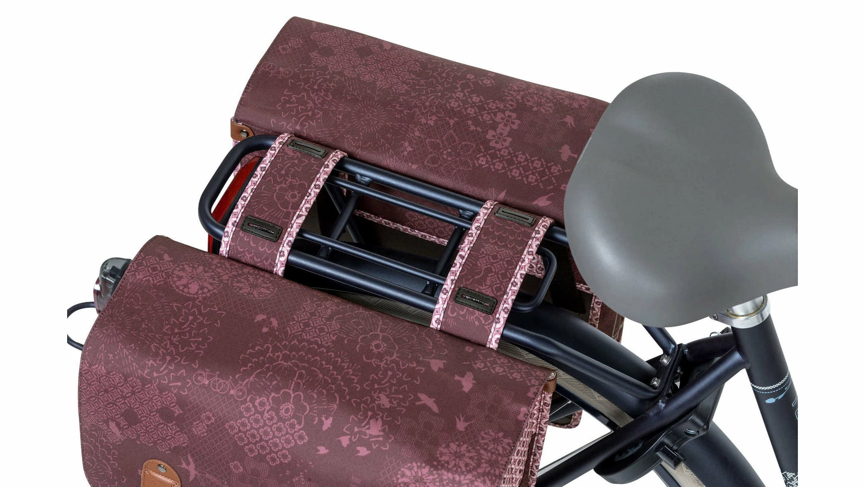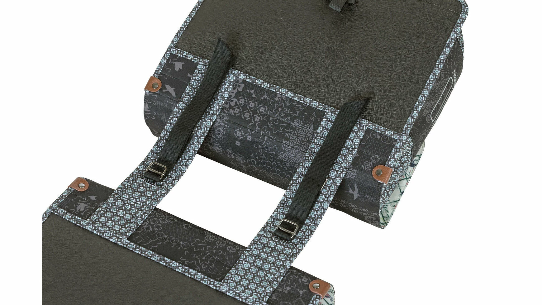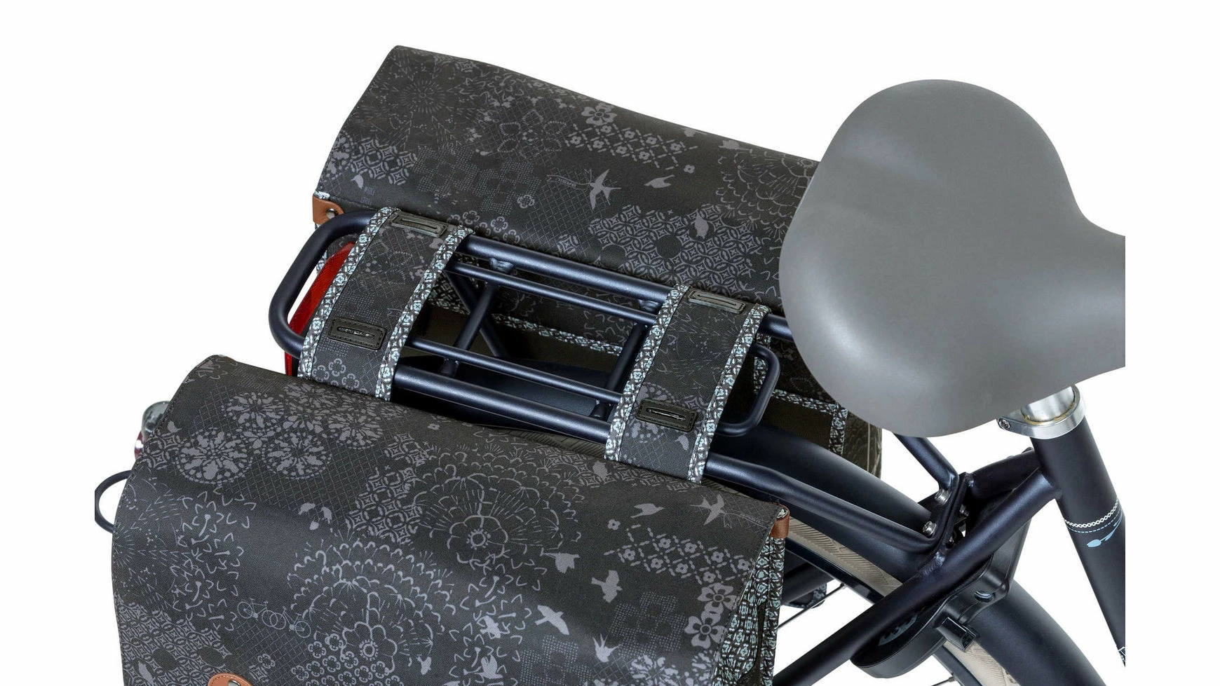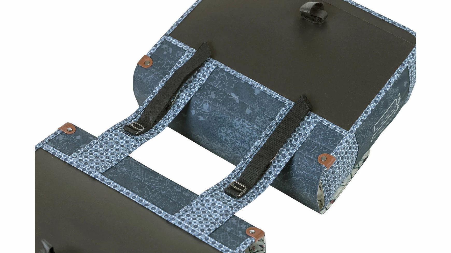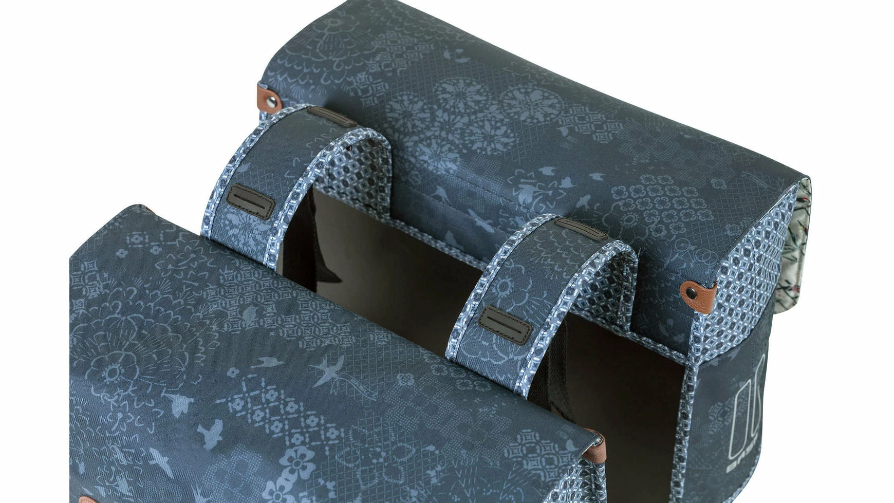 Der Basil Boheme Doppeltasche ist eine doppelte Fahrradtasche mit einem stilvollen böhmischen Print. Die blaue Tasche hat einen Inhalt von 35 Litern, womit man mehr als genug Einkaufsgegenstände, Sportsachen oder andere Bedarfsgegenständedarin unterbekommt. Eine Fahrradfahrt zum Supermarkt oder ein Trip mit Freundinnen, diese Fahrradtasche macht deine Fahrradfahrt einfacher und schöner. Die Fahrradtasche ist geeignet für diverse Gepäckträger (auch E-Bikes) und verfügt über eine stabile Innenfütterung und Details aus Kunstleder. Mit Hilfe des Kordelzugs und der verstellbaren Steckschnallen ist die Tasche gut zu schließen. Durch das wasserabweisende Polyester bleibt der Inhalt der Tasche trocken bei einem kleinen Regenschauer. Die Reflektordetails an beiden Seiten sorgen dafür, dass man in Dunkelheit besser sichtbar ist. Mit dem Universal Bridge System kannst du die die Tasche einfach auf deinem Gepäckträger montieren.Sie passt auch auf den Gepäckträger deines E-Bikes.