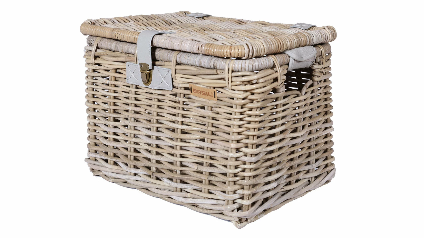 Der Basil Denton L ist ein luxuriöser Aufbewahrungskorb für ein Damen- oder Herrenfahrrad. Der Korb verfügt darüber hinaus über einen Deckel mit Verschluss. Der Korb fällt aufgrund seiner grauen Farbe und einer Vielzahl an Details sofort auf. Dieser praktische Aufbewahrungskorb ist eine Bereicherung für das tägliche Einkaufen gehen oder das Transportieren deiner Sporttasche. Der Korb bietet ebenfalls für ein herrliches Picknick an. Ideal während eines Fahrradurlaubs im Frühling oder bei schönem Sommerwetter. Es handelt sich um einen stilvollen Korb, womit man sicherlich gesehen werden will. Die Haltegriffe und Details aus Kunstleder geben dem Korb eine edle Ausstrahlung. Dieser Rattan-Fahrradkorb wird ohne Befestigungsmaterial geliefert, er kann jedoch auf dem Vorderradgepäckträger mit Hilfe des Crate Mounting-Sets montiert werden. Letzteres Set muss separat erworben werden. Die Haltegriffe aus Leder ermöglichen es den Korb überall hin mitnehmen zu können.