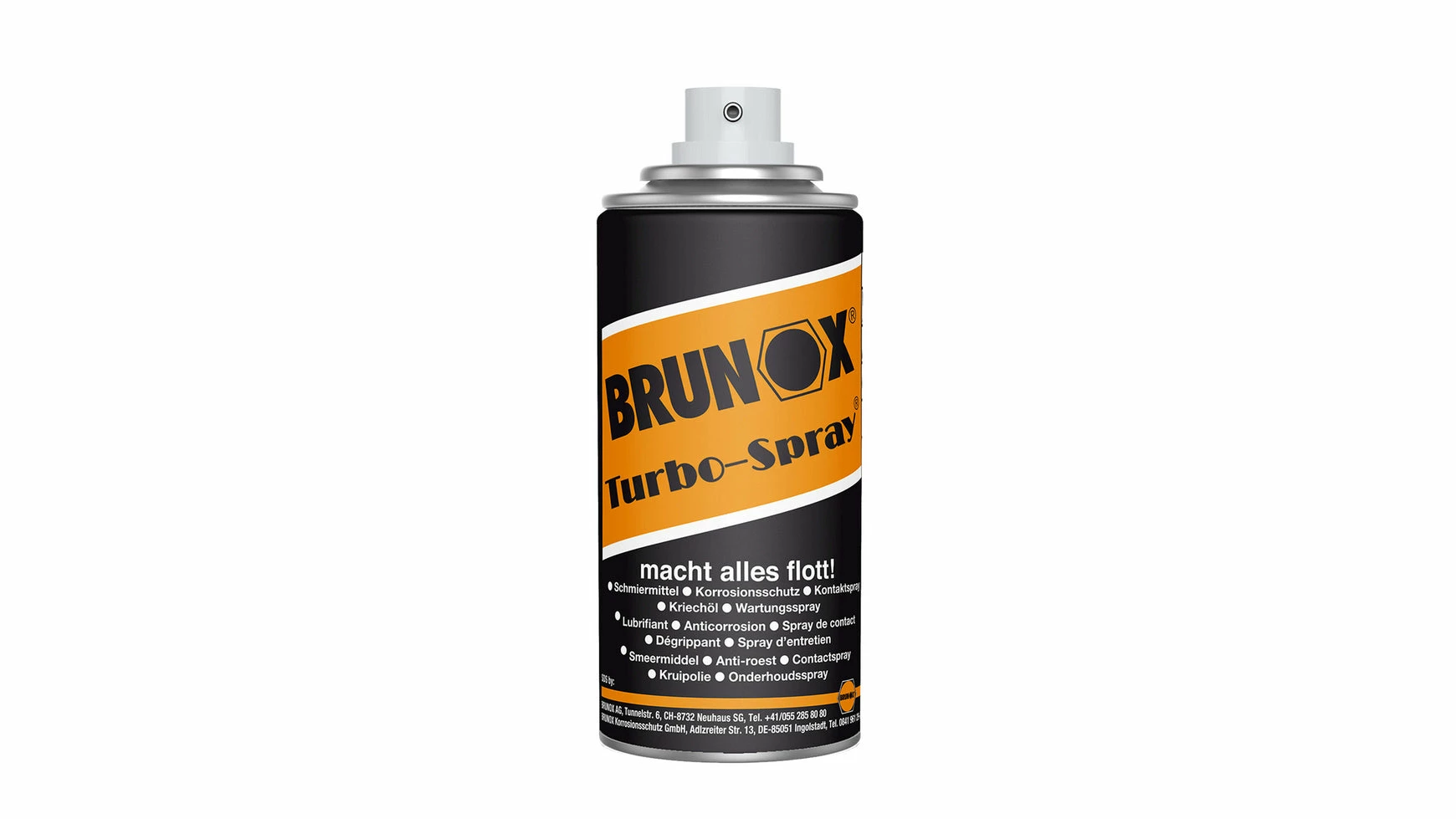 Schmiermittel: Dank einer ausgewogenen Mischung von Kohlenwasserstoffen und dem Additiv TURBOLINE, formt es einen 1 – 2 µm dicken, transparenten, nicht aushärtenden Schmierfilm, der die Feuchtigkeit verdrängt und nachhaltig schmiert.Rostlöser / Kriechöl: BRUNOX Turbo-Spray hat eine ausgezeichnete Kriechfähigkeit. Aufgrund der Kapillarwirkung ist es in der Lage in feinste Haarrisse und Zwischenräume einzudringen und z.B. festgefressene Schrauben in Kürze zu lösen. Rostlöser / Kriechöl: Brunox Turbo-Spray hat eine ausgezeichnete Kriechfähigkeit. Aufgrund der Kapillarwirkung ist es in der Lage in feinste Haarrisse und Zwischenräume einzudringen und z.B. festgefressene Schrauben in Kürze zu lösen. Korrosionsschutzmittel (temporär für 3 – 6 Monate): BRUNOX Turbo-Spray garantiert für vollständigen Korrosionsschutz. Der verantwortliche Kohlenwasserstoff – Mix gewährleistet sowohl einen zusammenhängenden Schutzfilm als auch die notwendige Schichtdicke. Pflege – / Service – Spray: Brunox Turbo-Spray unterkriecht mineralischen Schmutz und löst organischen Schmutz auf, so dass Flecken (fast) aller Art mühelos entfernt werden können. Kontakt – Spray: BRUNOX Turbo-Spray besitzt eine sehr geringe Oberflächenspannung und eine entsprechende Adhäsion zu Metallen, so dass Feuchtigkeit in Apparaten und auf Platinen sofort verdrängt wird. Damit werden schädliche Kriechströme verhindert. BRUNOX Turbo-Spray löst Verunreinigungen auf Kontaktoberflächen, reinigt und schützt das Kontaktmaterial.