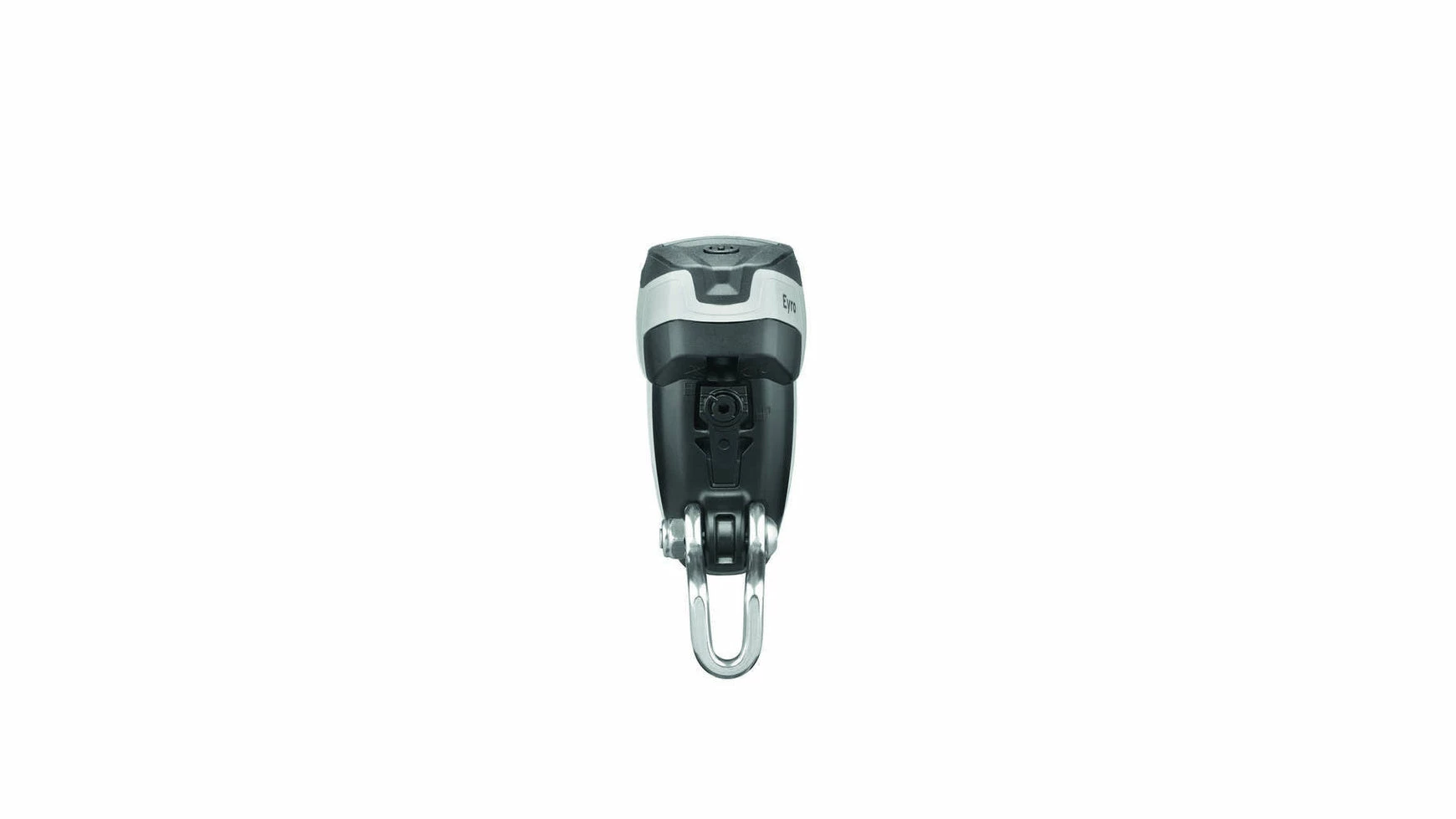 Ein neuer Platz am Fahrrad für Akku-Beleuchtung: Der LUMOTEC IQ Eyro ist der erste Akku-Scheinwerfer aus dem Hause Busch& Müller, der an der Gabel montiert wird – mit IQ-Lichttechnik. Der Eyro liefert eine gute und homogene Fahrbahnausleuchtung von 30 Lux mit Licht im Nahbereich direkt vor dem Fahrrad. Im helleren der beiden Betriebsmodi leuchtet er über fünf Stunden. Einfach und praktisch: Die Licht/Akku-Einheit kann zum Aufladen oder Mitnehmen mit nur einem Handgriff abgenommen werden – nur das Trägerteil bleibt am Rad. Der Lithium-Akku des Eyro ist fest verbaut und kann problemlos per USB geladen werden. Zugelassen ist der Eyro im Geltungsbereich der StVZO für alle Räder – und dank seines bereits integrierten Front-Rückstrahlers muss ein solcher nicht separat montiert werden.