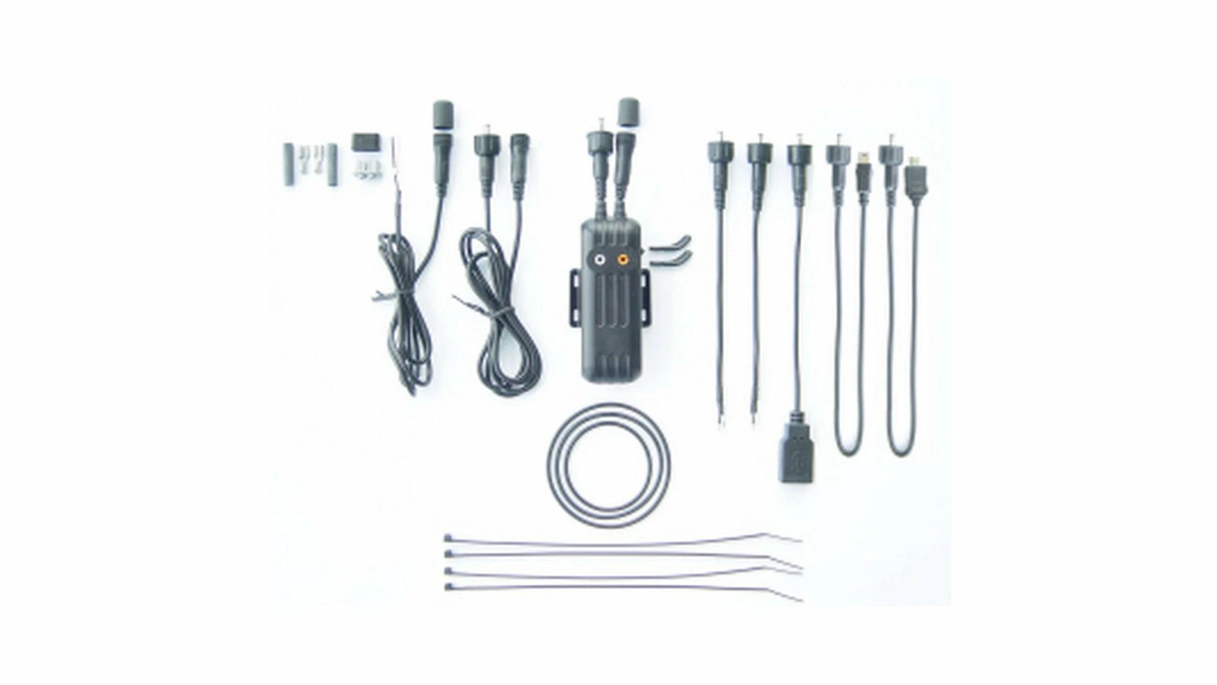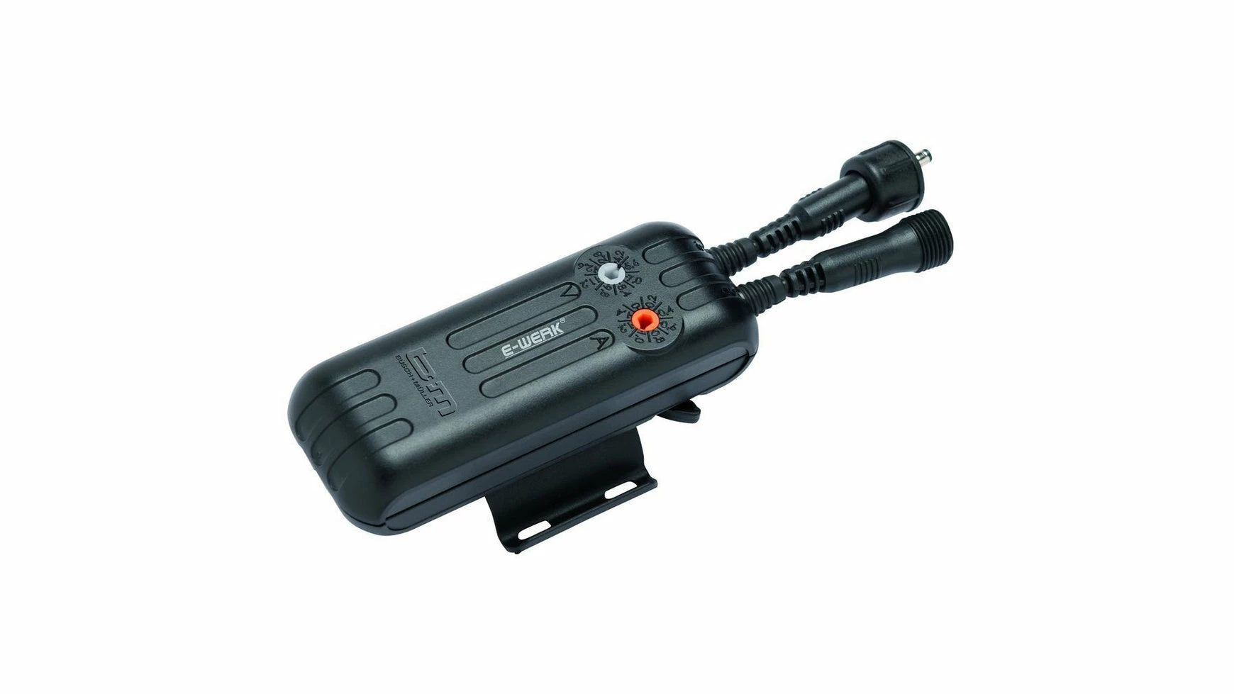Für all diejenigen, die beim Radfahren nicht auf die Benutzung ihrer Mobiltelefone, GPS-Empfänger, MP3-Player und sonstiger elektronischer Geräte verzichten wollen oder die unterwegs keine stationäre Ladestation haben, gibt es das neue „bike-mobile“ E-WERK. Schließt man das kompakte Gerät am Nabendynamo an, wird der durch die Leistung des Radfahrerserzeugte Strom nicht mehr ausschließlich für die Lichtanlage verwendet, sondern kann alternativ im E-WERK umgesetzt werden. Abgegeben wird die Energie über die beiden beiliegenden Anschlusskabel, an die der Tüftler individuell die für seine Anwendung benötigten Stecker anschließen kann. Oder der Anwender nutzt das ebenfalls beiliegende USB-Kabel – die Standardverbindung schlechthin, die Kompatibilität mit sehr vielen Produkten bietet – und sorgt somit dafür, dass keinemGerät unterwegs der Saft ausgehen muss. Mit einem an der Unterseite des Geräts befestigten Stift lassen sich an zwei Drehknöpfen Spannung (2,8 bis 13,3 V) und Stromstärke (0,1 bis 1,5 A) variabel und schnell für alle gängigen Anwendungeneinstellen. Das E-WERK leistet bis zu 16 W und das bei Leerlaufverlusten von nur 0,03 W bei 30 km/h! Schon bei einer Geschwindigkeit von 15 km/h lädt E-WERK so schnell wie ein Standard-Netzladegerät. Ein Verlängerungskabel sorgt dafür, dass der Strom praktisch überall am Fahrrad abgegriffen werden kann. Kabelverschraubungen halten die Anschlüsse am E-WERK sicher wasserdicht. Zur Montage des „Kraftwerks im Miniaturformat“ an den verschiedensten Stellen des Fahrrads sind Gummiringe in drei unterschiedlichen Größen und auch Kabelbinder beigelegt. Übrigens: Der ebenfalls bei uns erhältliche Universal-Cockpit Halter ist das ideale Zubehörteil zum E-WERK, denn dieser Adapter sorgt dafür, dass alle angeschlossenen Geräte sicher im Blickfeld des Radfahrers am Lenker befestigt werden können.