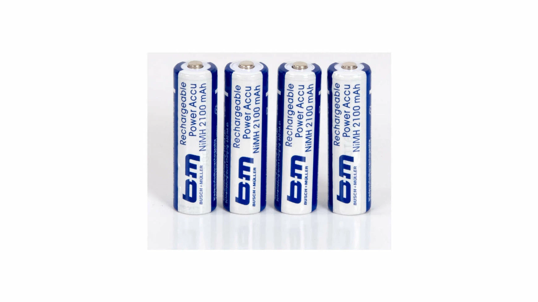 4 Busch & Müller Power-Accus – Größe: AA, HR 6, Mignon 1,2V – kein Memory-Effekt – Normalladung: 210 mA 15H, Schnelladung: 630mA 4h