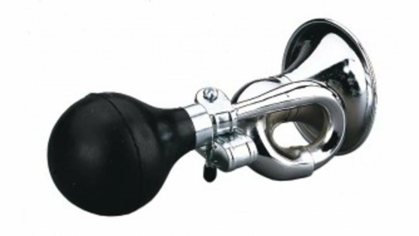 Posthorn Ballhupe aus Metall mit Befestigungsschelle für den Lenker.