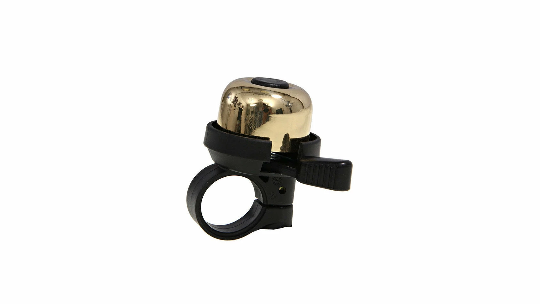 Kleine CFP Glocke mit 33mm Durchmesser, für sämtliche Lenker. Der Klangkörper ist aus Messing, das Unterteil aus Kunststoff. Die Glocke wird mit einer Schraube am Lenker befestigt. Die Glocke hat einen langanhaltenden Klang.