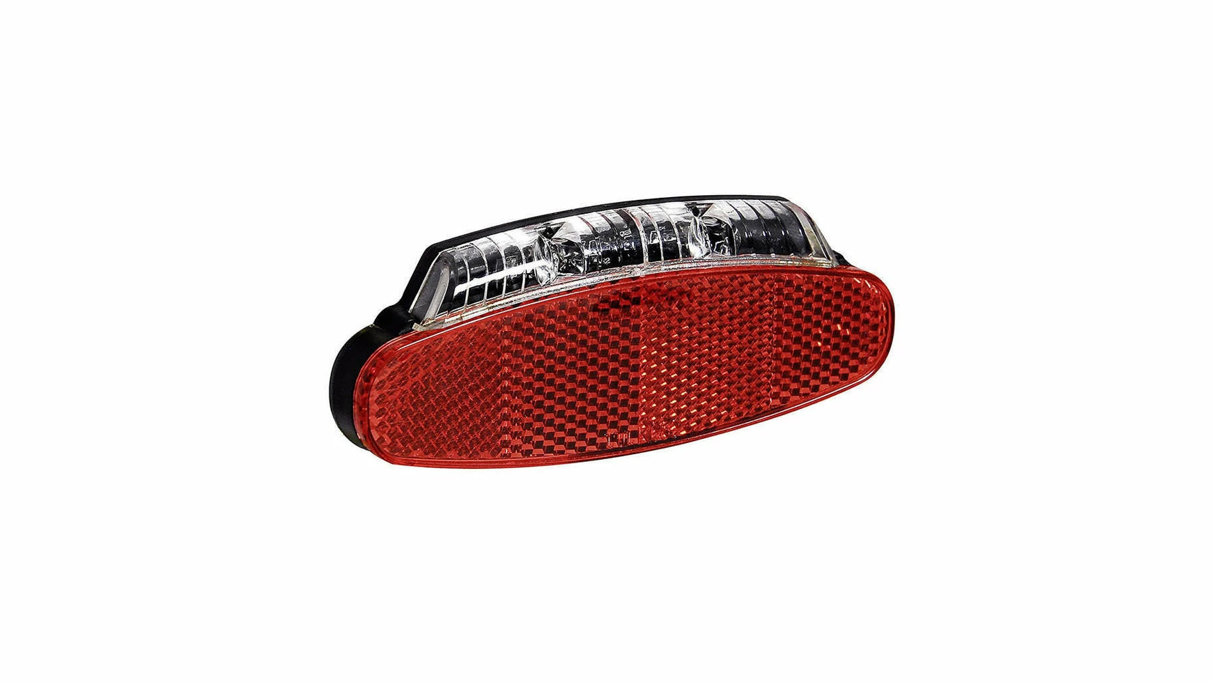 Das dynamogestützte Gepäckträger-Rücklicht CFP Broadway beinhaltet zwei LEDs die über 100.000 Stunden Leuchtdauer bieten. Das Rücklicht hat eine, durch einen Kondensator betriebene, Standlichtautomatik, die sich nach einiger Zeit automatisch wieder abschaltet. Durch die vormontierte Befestigungsschraube können Sie das, mit einem Z-Reflektor und Doppelkabelanschluss ausgestatteten, problemlos an Ihren Gepäckträger anbringen.