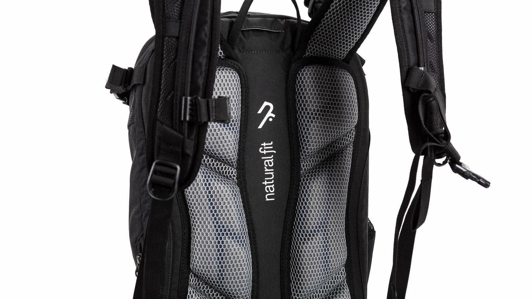 Perfektes Timing, die Wolkendecke reißt auf und die Sonne strahlt durch die Baumkronen am Einstieg meines Lieblings-Trails. Am Anfang zieht er noch flowig durch den Fichtenwald aber weiter unten wird er technisch und steil. ImFall der Fälle sind Ersatzschlauch und Pumpe leicht zugänglichen im perfekt organisierten Werkzeugfach. Und dann der fiese Drop an der Schlüsselstelle. Ein gutes Gefühl zu wissen, dass mein Rücken durch den integrierten SAS-Tec Protektoroptimal geschützt ist.