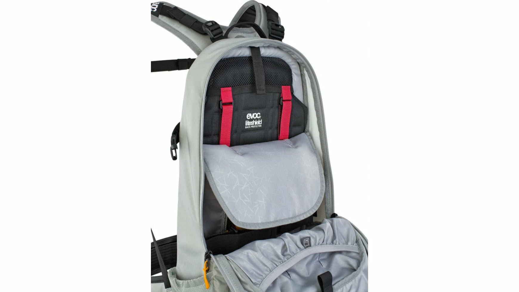 Protektor-Rucksack für E-Bike Touren mit einem separaten Akku-Fach.