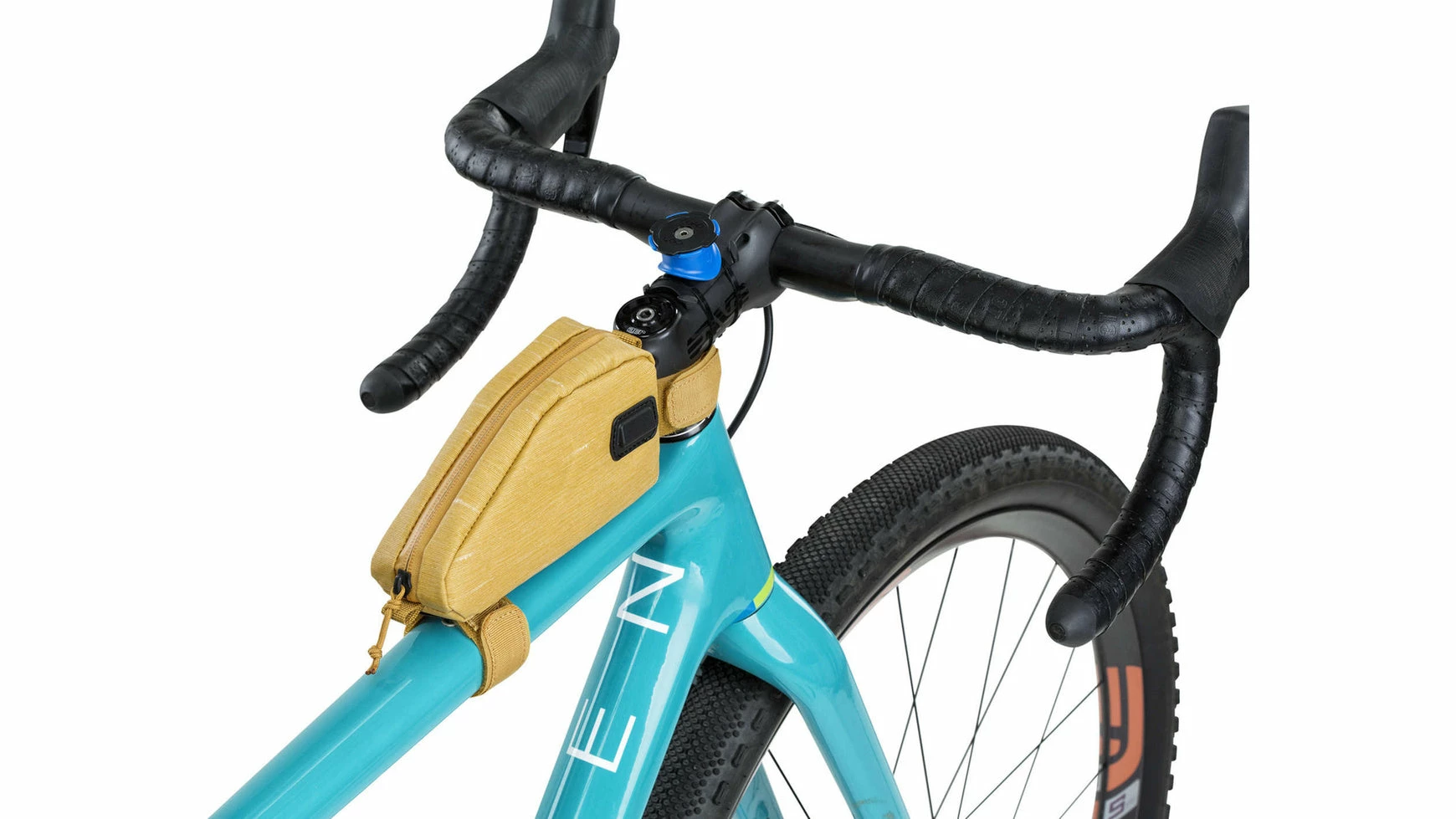 Wasserabweisende, leicht erreichbare Tasche für zusätzlichen Stauraum am Oberrohr.