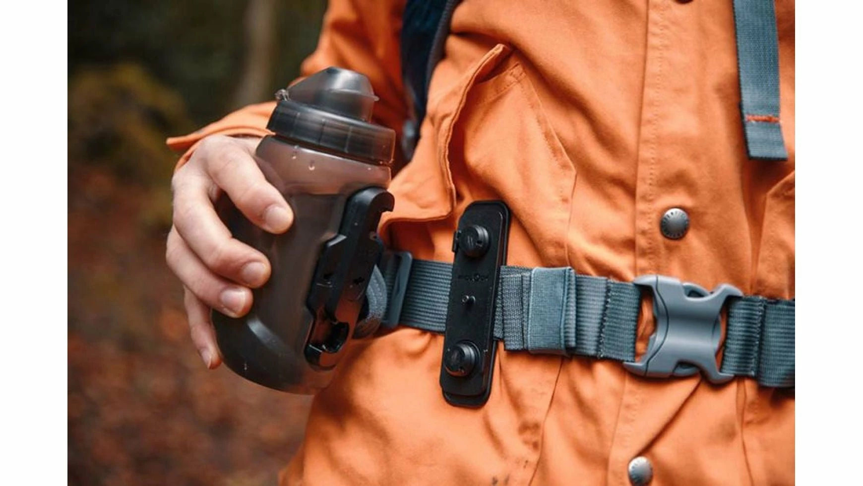 Fester Halt, selbstschließend und auslaufsicher: das TWIST Bottle 450 + Tex Base Multi Trinksystem von Fidlock Dass die TWIST tex base die perfekte Erweiterung des TWIST-Systems abseits des Fahrrads ist, hat die erste Generation der tex base bereits bewiesen. Dank der Anpassungen ist die neue tex base multi nun auch einfach und griffbereit an Schultergurten befestigt. Ob am Running-Belt, an Rucksackriemen, oder am Hüftgurt – mit der TWIST tex base multi ist die TWIST bottle immer in greifbarer Nähe – perfekt für Outdoor und Sport. Die TWIST tex base multi kommt nun neu in einer 2-in-1-Variante daher. An vertikal verlaufenden Gurten wird die base einfach mit einem Gummiring befestigt. Für alle horizontal laufenden Riemen bleibt die bereits bekannte Befestigungsmethode: Den Gurt zwischen die zwei Kunststoffplatten einlegen und mit den Magnetschraubköpfen einspannen. Neben der verbesserten Verbindungstechnologie für einen garantiert festen Halt, kommt die neue TWIST bottle 450 auch mit einem neuen Deckel mit selbstschließender Membran daher. Die sorgt für einen großen Wasserdurchfluss und ist dabei absolut auslauf- und tropfsicher. Dank der abnehmbaren Schmutzkappe bleibt das Mundstück auch bei hängender Montage am Unterrohr sauber.