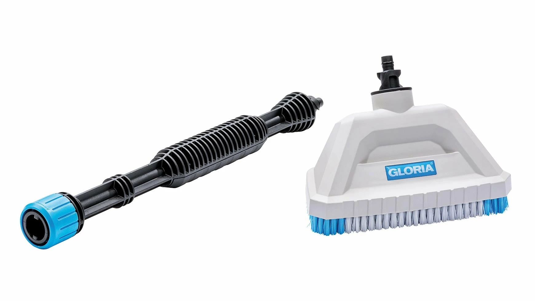 Das Bürsten Set beinhaltet aus einem 180 mm breiten Bürstenkopf, an welchen rundherum Nylon-Borsten angebracht sind. In der Mitte des Kopfes befindet sich eine Flachstrahl-Düse, zur Ausbringung von Wasser oder Reinigungsmittel. Eine 2-in-1 Reinigungswirkung ist durch Reinigungsstrahl und Bürste garantiert. Auch im Set enthalten ist eine 40 cm Verlängerungslanze, die sich mit den bestehenden Sprühlanzen aller MultiJet-Geräte kombinieren lässt. So können beispielsweise Balkone, Terrassen oder Holzdecks bequem in angenehmer Arbeitshöhe gesäubert werden.