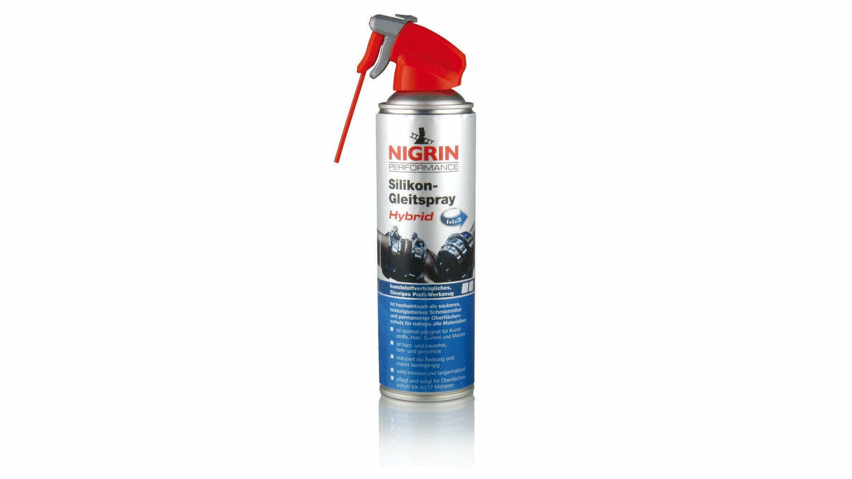 Die NIGRIN HYBRID-Formel von Silikon-Gleitspray vereint die positiven Eigenschaften mehrerer Rohstoffe zu potenzierter Leistung. Das bedeutet mehr Performance und Funktionalität für Sie. Denn die synergetische Wirkung der spezifischen NIGRIN Hochleistungsrezeptur ist effektiver als die Summe der Einzelwirkungen der Rohstoffbestandteile. NIGRIN HYBRID Silikon-Gleitspray wirkt wesentlich intensiver und langanhaltender als Standardprodukte. Es besteht aus einer Kombination von vollsynthetischen Spezial-Silikonen, die neue Universaleigenschaften ermöglichen! Sie kombinieren und potenzieren exzellente Gleit- und Trenneigenschaften mit hervorragenden Kriech und Schmiereigenschaften sowie langanhaltender Permanentwirkung. NIGRIN HYBRID Silikon-Gleitspray schmiert, pflegt und schützt wirksam Kunststoffe, Holz, Gummi und Metalle aller Art. Es ist dabei sauber, fett-, öl-, harz- und säurefrei, farb- und geruchlos und sorgt für permanenten Oberflächenschutz und Pflege bis zu 12 Monaten.