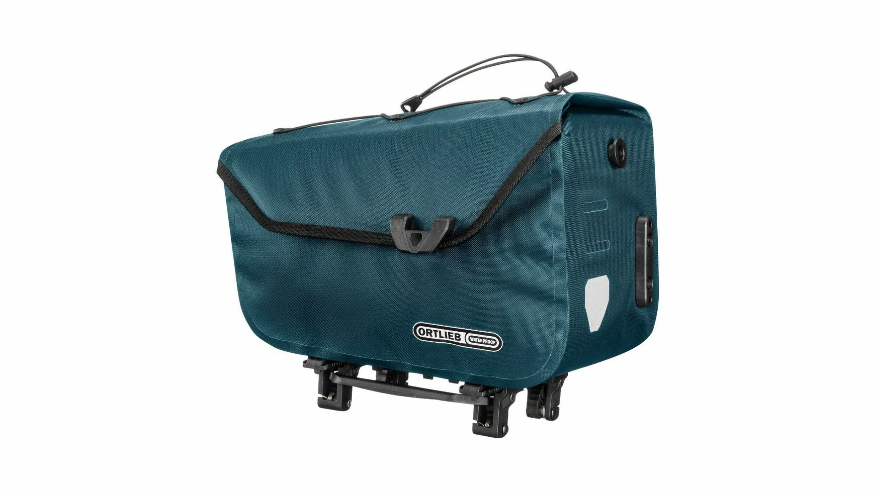 Die wasserdichte E-Trunk Tasche von Ortlieb befestigen SIe dank des Top-Lock-Adaptersystems unkompliziert auf Ihrem Gepäckträger. Mit 10 Liter Volumen schafft sie Stauraum für ausgiebige Touren auf Deinem E-Bike. In ihren Innentaschen können Sie das E-Bike-Display sowie Deine Wertsachen separat unterbringen. Ihr magnetischer Deckelverschluss ermöglicht Ihnen ein schnelles Öffnen und Schließen, während Sie auf der Oberseite mittels einer elastischen Kordel Ihren Ausrüstung anbringen können. Sie hat eine Rücklichthalterung und zudem eine Aufnahme auf der Rückseite, an der sich ein Flaschenhalter befestigen lässt. Falls Sie ihr Bike mal stehen lassen, können Sie durch einen Schultertragegurt außerdem jederzeit zu einer Umhängetasche umfunktionieren.