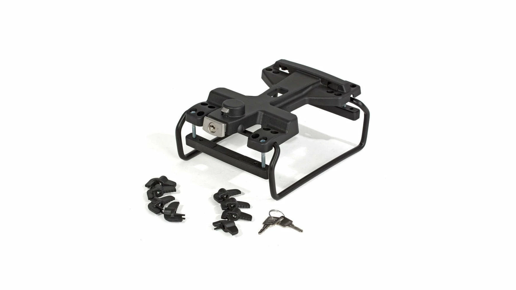 Der ORTLIEB-Adapter für – die Hartschalen-Aktentasche Office-Bag2, – den Hartschalen-Trolley Shuttle (alle Modelle: Bike, Business, Photo), – den Fahrradkoffer Travel-Biker und – die Hartschalen-Box Bike-Box2 und Semi-Hartschalen-Box Bike-Box3 ermöglicht schnelles und sicheres Arretieren des Gepäckstückes am Gepäckträger. Durch einfachen Tastendruck wird er wieder entriegelt. ORTLIEB Radtaschen (und andere) können bei Bedarf zusätzlich rechts und links an dem Gepäckträger-Adapter eingehängt werden. Das entsprechende Gegenstück ist serienmäßig an allen oben genannten ORTLIEB-Produkten montiert (damit auch Bestandteil des ORTLIEB Travel-Sets). Für Zweiträder ist der Adapter auch einzeln als Zubehör erhältlich (Art.Nr. E159). Ausserdem dient er zur Montage eines hinteren Fahrradkorbes (hierfür ist zusätzlich die Halteplatte Artnr. E160 notwendig). Auf