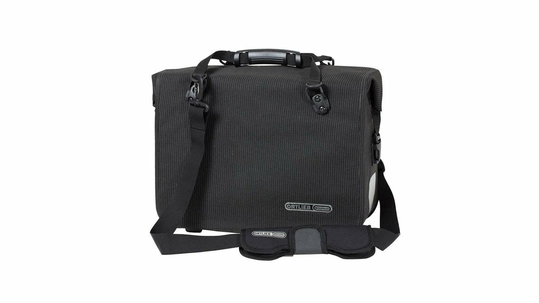 Schwarz und elegant bei Tag. Nachts ein reflektierendes Schutzschild: Die Office-Bag der High-Visibility Line eignet sich ideal für den Büro-Weg: Zwei DIN A4 Ordner, Schreibzeug und Co. passen in die praktische Fahrradaktentasche. Mit komfortablem Tragegurt und stabilen Abstellfüßen. Erhältlich wahlweise mit Quick-Lock2.1 oder Quick-Lock3.1.