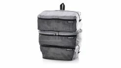 Finden statt Suchen lautet die Devise. Die Packing Cubes sparen Zeit und Nerven, weil sie dich beim gut organisierten Packen für deine Radreise unterstützen: In den Taschen lassen sich Campingausrüstung, Kleidung, Erste-Hilfe-Ausrüstung, Werkzeug, Waschzeug und vieles mehr unterbringen. Dieses Ordnungssystem ist für die kleinen Dinge gemacht, die in den Tiefen der Radtaschen oft nach unten rutschen oder sich in vielen kleinen Beuteln irgendwo befinden. Außerdem wird dadurch die getrennte Aufbewahrung von sauberer und schmutziger Ausrüstung wie z. B. Wäsche erleichtert. Die drei Taschen mit 2 x 6 L und 1x 5 L Volumen passen übereinander gestapelt perfekt in den ORTLIEB Back-Roller oder Velo-Shopper und Bike-Packer. Das robuste und leichte Nylon-Material ist sorgfältig verarbeitet – für eine lange Lebensdauer. Alle Taschen sind mit einem praktischen 2-Wege Reißverschluss ausgestattet – umlaufend bei der mittleren Tasche und mittig bei der unteren undoberen Tasche – für besonders leichten Zugriff. Mit den Griffen an der Oberseite können die Organizer ganz leicht aus der Radtasche entnommen werden. Jede Tasche verfügt innen und außen über eine zusätzliche Netztasche für die Aufbewahrung von Kleinigkeiten, die man schnell griffbereit haben möchte. Da es sich um ein modulares System handelt, lassen sich die Taschen natürlich auch einzeln verwenden – so kannst du für einen Kurztrip z. B. nur eine oder zwei Taschen mitnehmen.