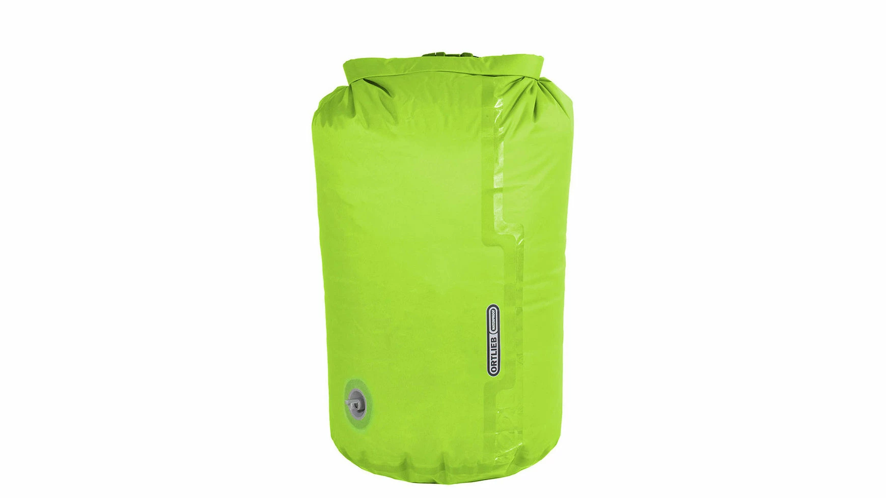 Bevor es auf große Tour geht, lässt er erstmal „Dampf“ ab: Der Ortlieb Kompressionspacksack aus ultraleichtem Nylongewebe verliert überschüssige Luft einfach durch den Ventil-Mechanismus. So schafft er mehr Stauraum im Inneren undminimiert sein Packmaß. Der Kompressionspacksack verpackt das Equipment zudem wasserdicht und ist die ideale Ergänzung zu nicht wasserdichten Transportsystemen.