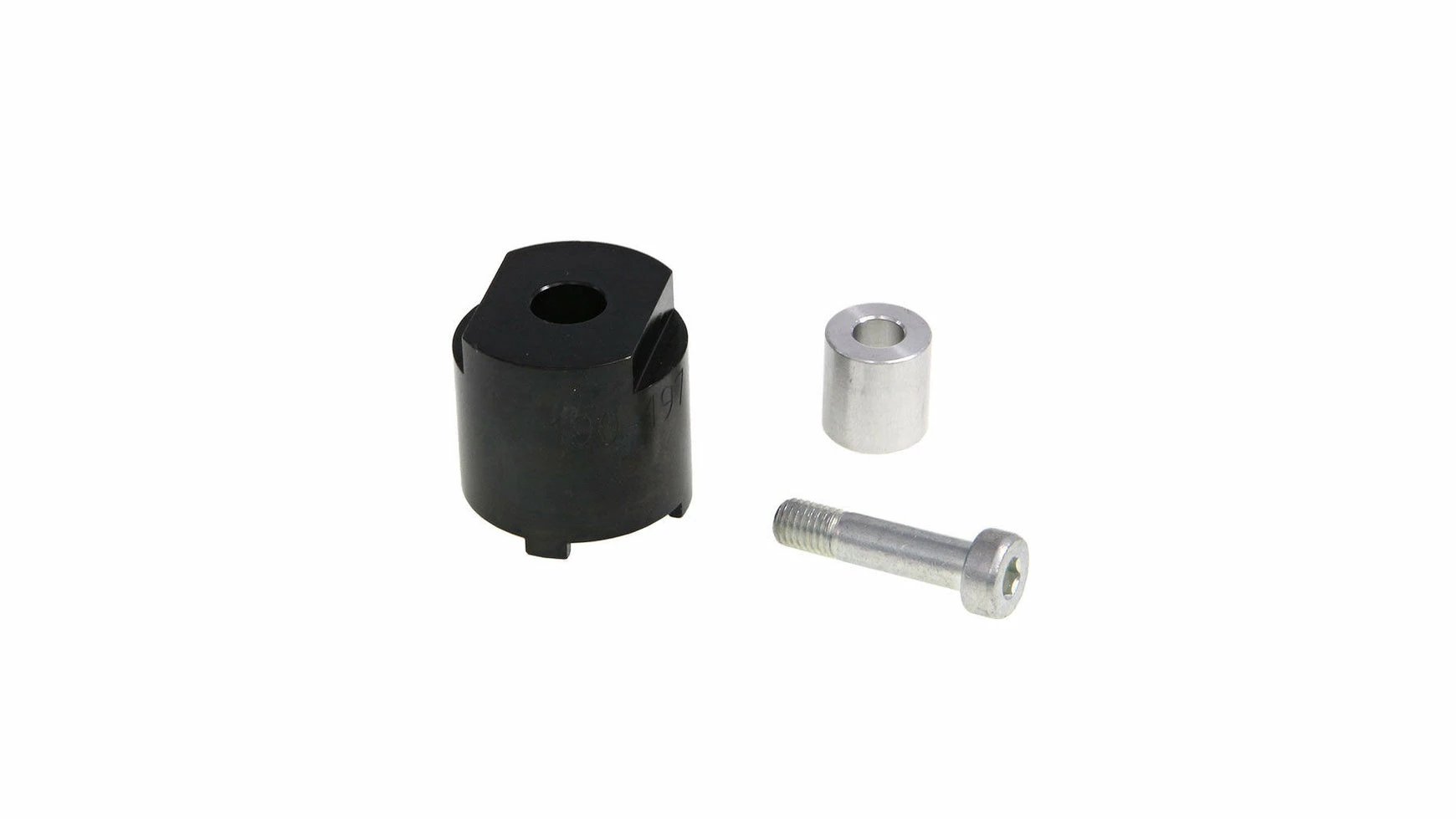 Werkzeug zur Demontage des Ritzels oder des Steckritzel Adapters (Splined Carrier) an Rohloff Speedhub 500/14 Getriebenaben.Das Ritzel und der Steckritzel-Adapter (Splined Carrier) der Rohloff Speedhub 500/14 Getriebenabe, sind über ein sechsgängiges Gewinde auf den Antreiber aufgeschraubt. Zur Demontage des Ritzels mit einer Kettenpeitsche muss der Antreiber festgehalten werden. Dazu dient der Rohloff Ritzelabzieher, der mit einem Gabelschlüssel Schlüsselweite 24gehalten werden kann. Der Ritzelabzieher wird mit A12 Adapter/Schraube geliefert.