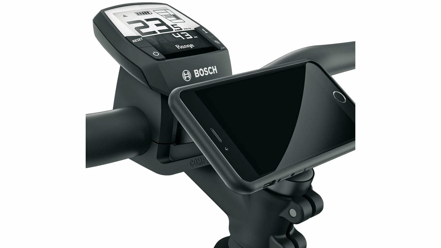 Winkelverstellbare Handyhalterung für den Lenker Einer für alle: Die Handyhalterung COMPIT lässt sich ganz unkompliziert auf unterschiedlichen Fahrradlenkern montieren. Neben Klemmarmen bietet das Komplettset mit beigelegten Spacern auch die Möglichkeit, den Handyhalter an E-Bikes mit Mittel-Displays zu befestigen, sodass Smartphone und Bordcomputer eine geschlossene Einheit am Lenker bilden. Fester Halt mit einem Dreh Mit einem Dreh lässt sich das Smartphone horizontal oder vertikal am Bajonettverschluss anbringen und ebenso schnell wieder abnehmen. Zusätzlich kann es durch die Winkeleinstellung in die gewünschte Position gebracht werden. Selbst in ruppigem Gelände hält COMPIT das Handy fest und sicher. Hinweis: Ein spezielles Smartphone-Cover/Tasche wird benötigt! Nur für Bosch Nyon bis 2020 kompatibel.