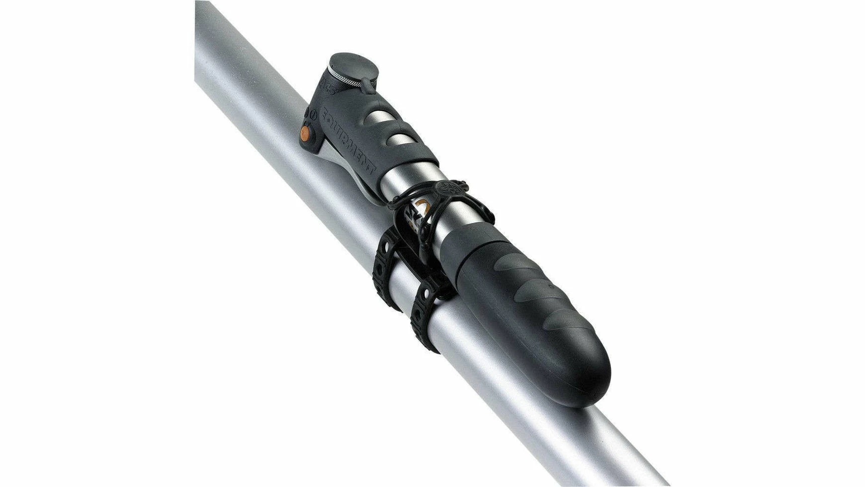 Durch die Gummiband-Montage des Halters kann die Pumpe sehr universell, auch 90° verdreht, angebracht werden. Passend für Rahmenrohrdurchmesser bis 50mm. (Pumpe ist nicht im Lieferumfang)