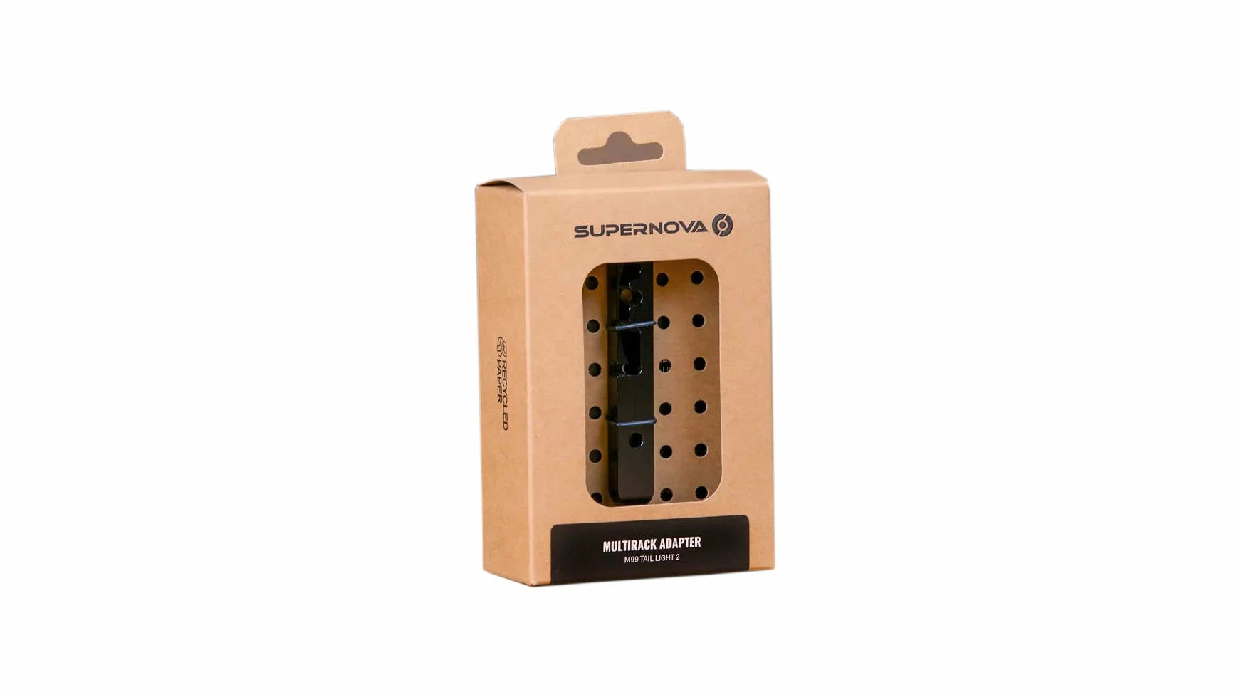 Der Supernova Multirack Adapter ermöglicht die Installation aller M99 Tail Light 2 Rücklichter an Standardgepäckträgern mit 50 mm Montagelochabstand und mit mittiger Kabelführung.