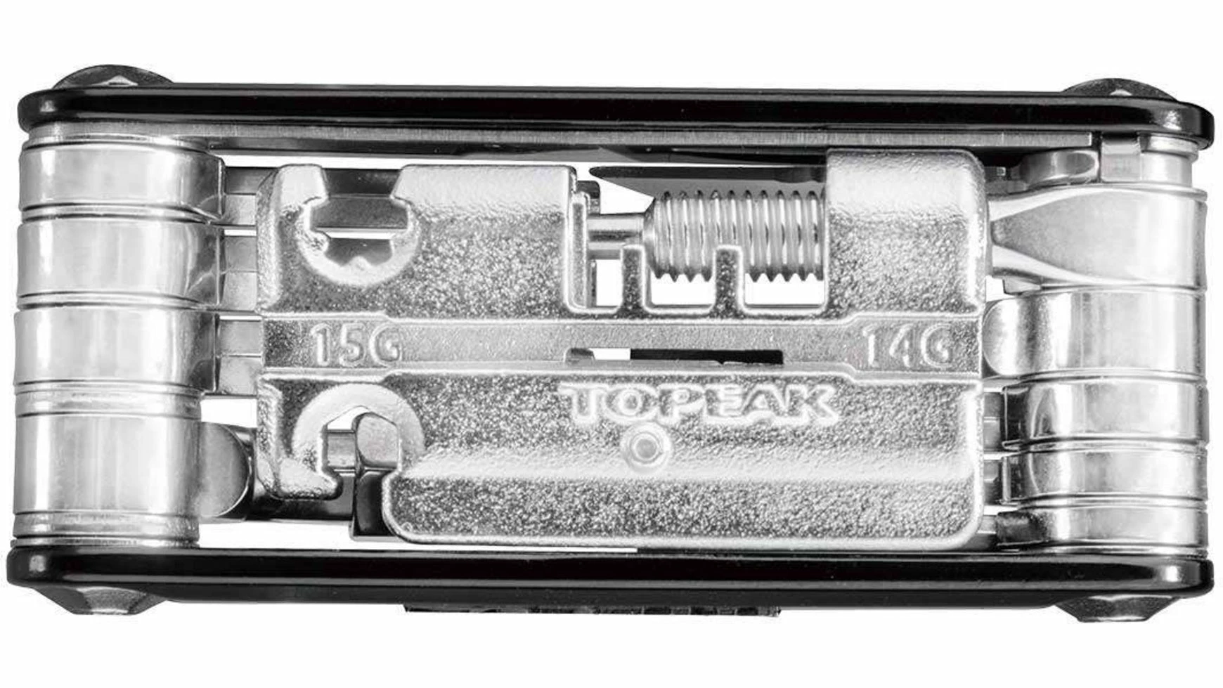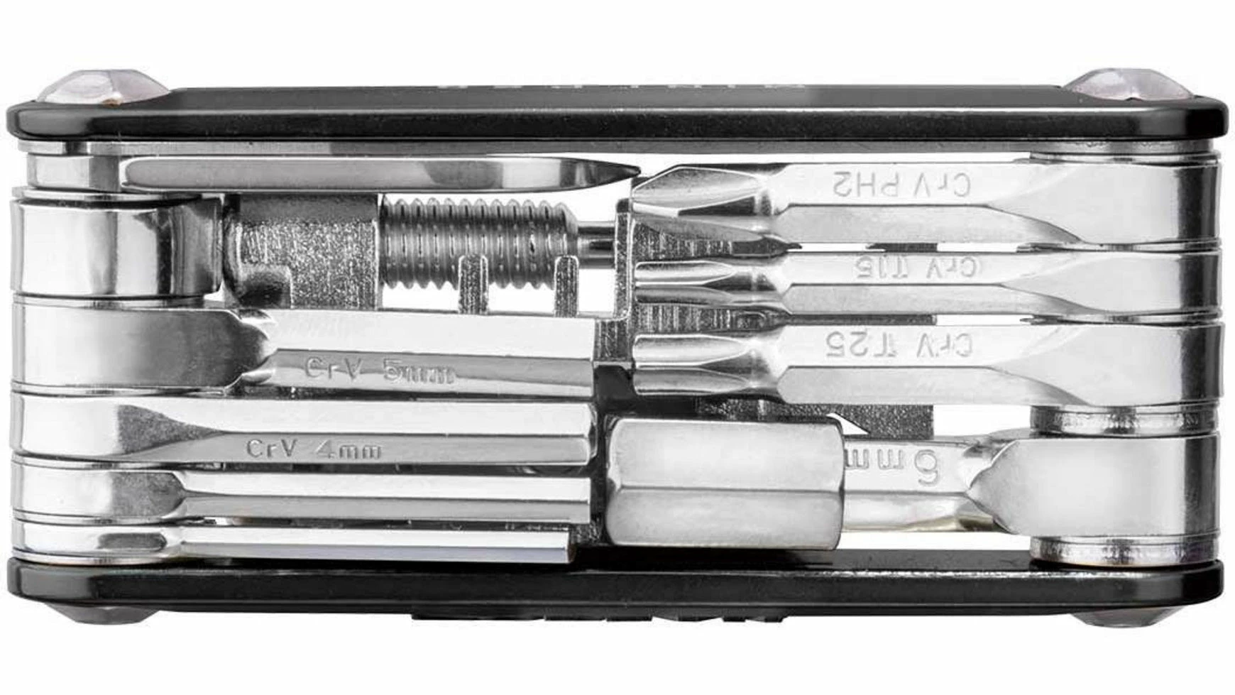 Präzisions-Minitool in Profi-Qualität mit 20 Funktionen in einem geschmiedetem Aluminiumkörper. Der integrierte Kettennieter und das einzigartige Kettenschlosswerkzeug lassen sich für besseres Handling ausklappen. Perfekt geeignet für lange Rennradausfahrten, ausdauernde Cross-, Gravel- oder Mountainbiketouren. Inklusive Neoprentasche. (Kettennieter: Kompatibel mit Single- und Multi-Speed Ketten bis 12-fach. NICHT kompatibel mit Campagnolo Hollow Pin Ketten)