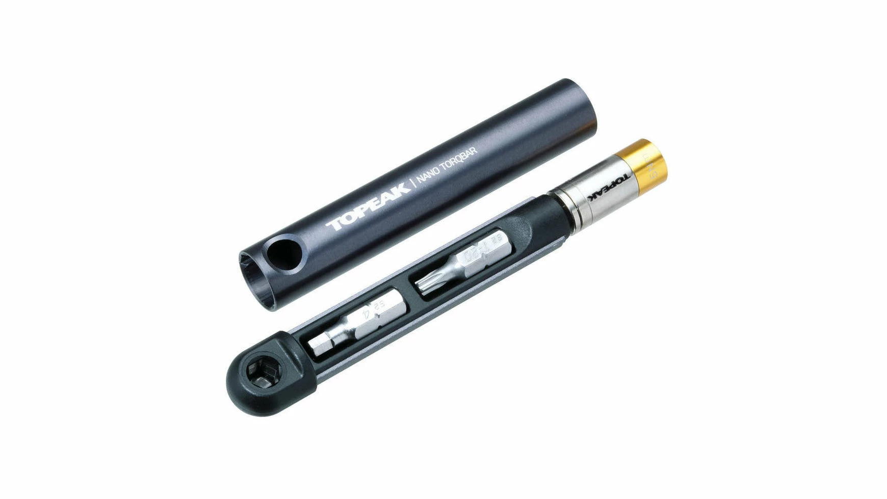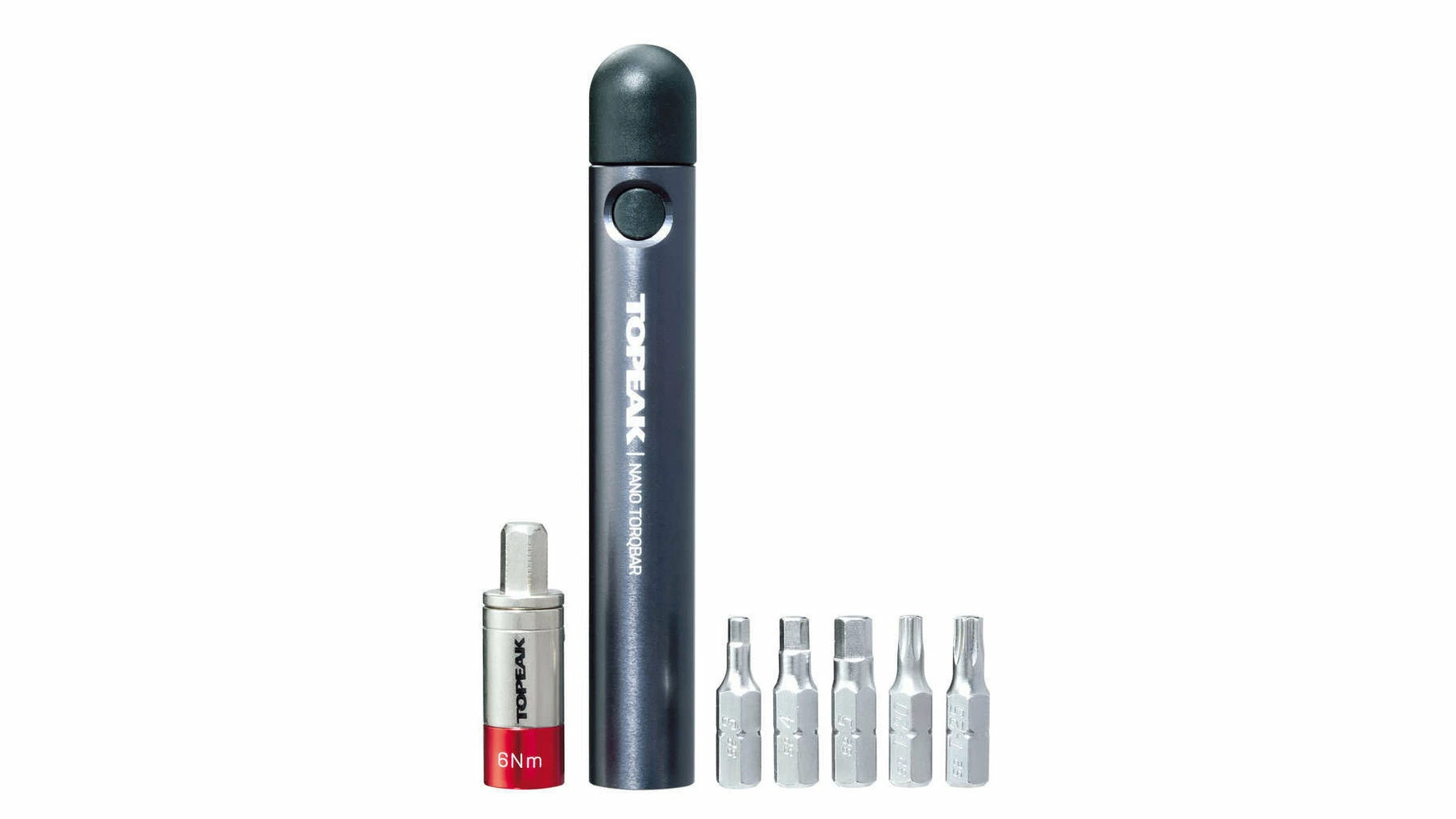 Der Nano TorqBar ist der schmalste und kompakteste Drehmomentschlüssel (voreingestellt) auf dem Markt! Ein präzise gefertigtes, hoch qualitatives Werkzeug für den Heimmechaniker, die Fahrradwerkstatt oder die eigene Trikottasche. Besonders für Hightech Carbonrahmen, Komponenten und elektronische Schaltungen geeignet, die ein exaktes Anzugsmoment benötigen. Erhältlich in drei voreingestellten Drehmomenten (4 Nm, 5 Nm, 6 Nm) mit jeweils den 5 wichtigsten Bits (3 mm/4 mm/5 mm/T20/T25). Die zwei wichtigsten Bits können zudem für schnellstmöglichen Zugriff und bequemen Transport im Griff des TorqBar verstaut werden.