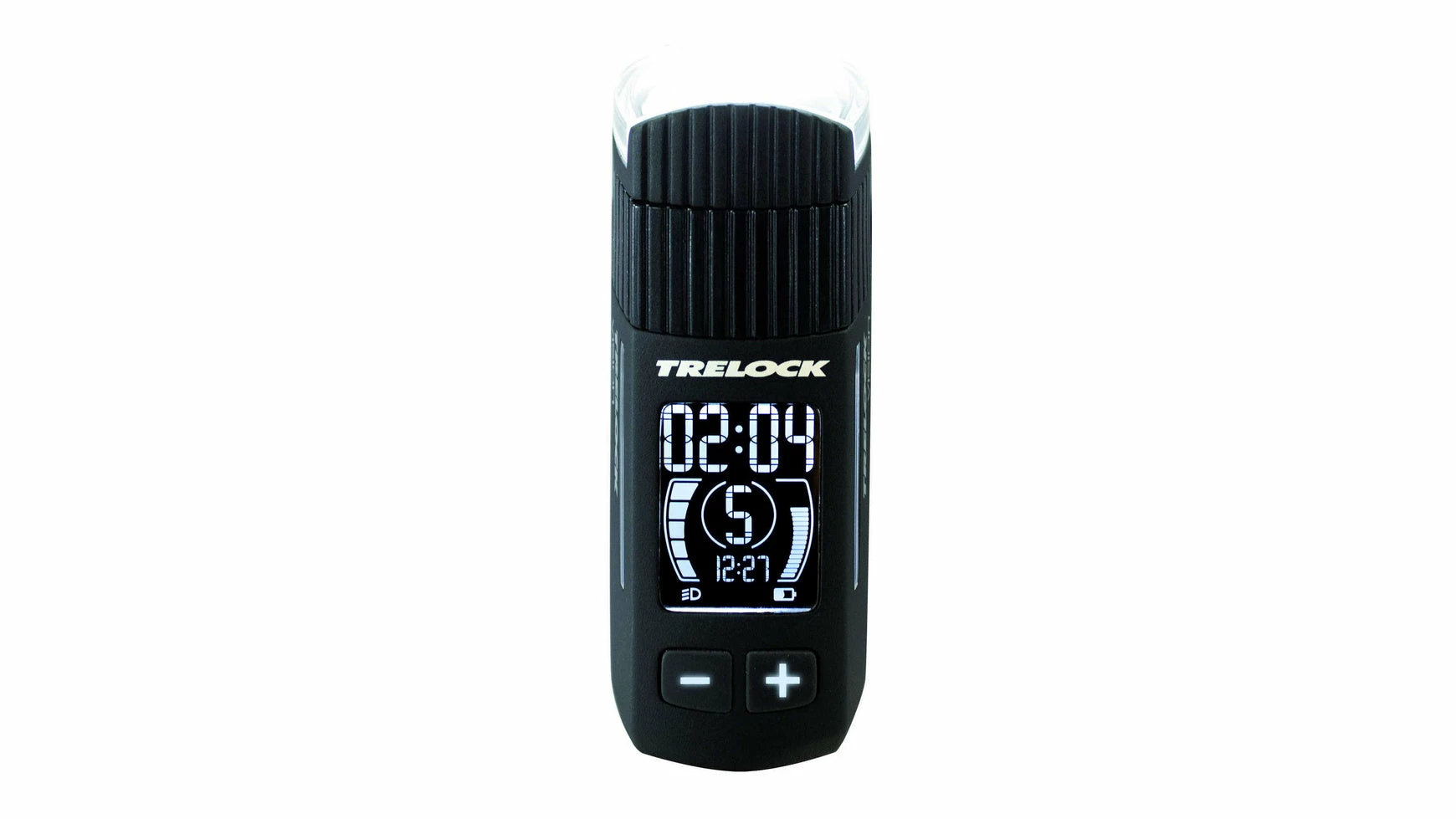 Frontlicht mit Uhrzeitanzeige und Powerbankfunktion – Trelocks neuester Wurf überzeugt mit 100 Lux Leuchtstärke, fünf Leuchtmodi und Powerbankfunktion. Das Display gibt Auskunft über Restleuchtdauer, Akkustand, Leuchtmodi und Uhrzeit. Die LS 760 i-Go Vision überzeugt eindeutig mit Daten. Das Display liefert vielfältige Informationen. So kannst du den Scheinwerfer über einen eingebauten Sensor optimal horizontal und blendfrei einstellen. Die Beleuchtungsstärke kannst du über die beleuchteten +/- Schalter auch während der Fahrt ändern, wobei das Display minutengenaue Auskunft über die Restleuchtdauer gibt. Der eingebaute Lithium-Ionen-Akku ermöglicht eine Leuchtdauer von bis zu 9 Stunden und kann über die Ladebuchse als Powerbank genutzt werden, wodurch du dein leeres Smartphone wieder aufladen kannst.