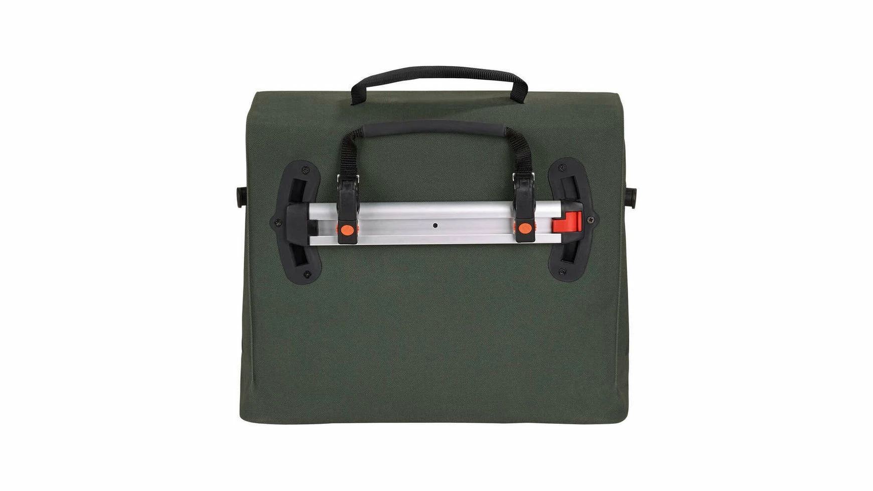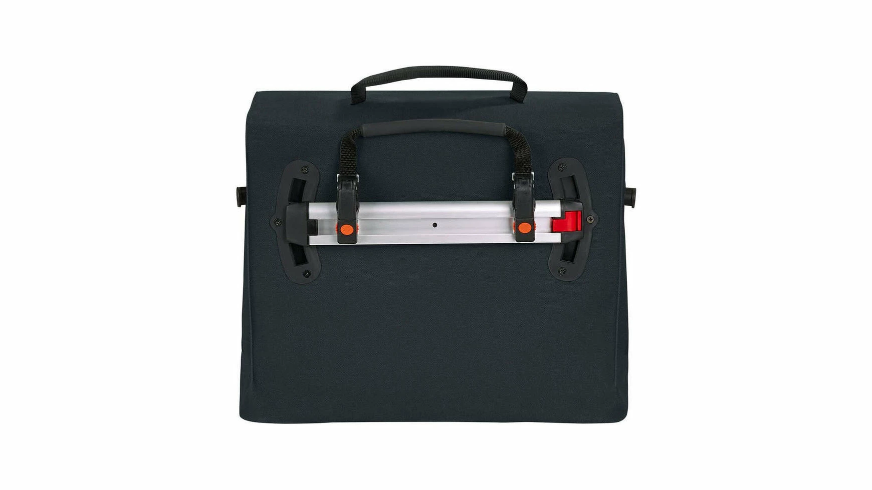 Die Aktentasche fürs Fahrrad. Die mittelgroße Hinterradtasche „Bayreuth M“ im Aktentaschenformat wird aus robustem Material mit textiler Optik hergestellt, ist wasserdicht verschweißt und komplett PVC-frei.