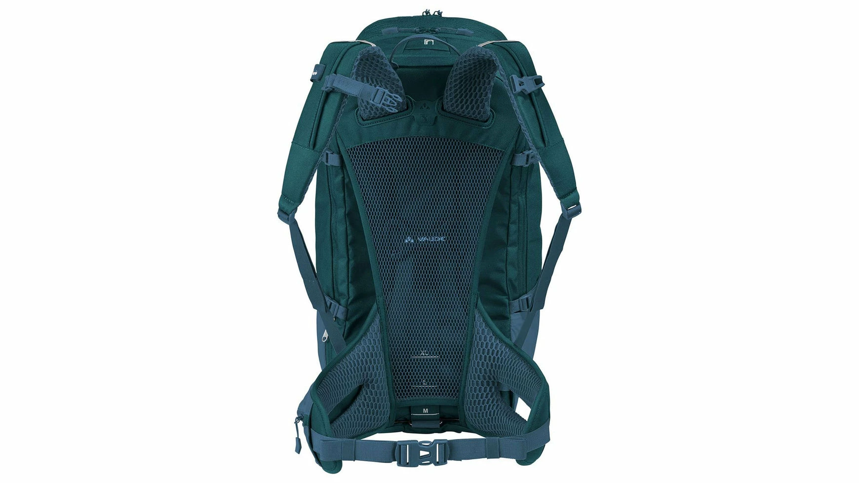 Über alle Berge. Der Bike-Rucksack mit umfangreicher Grundausstattung wird besonders umweltschonend aus bluesign® bescheinigtem Hauptmaterial hergestellt und bietet alles für die Königsdisziplin Alpencross. Für perfekten Sitz und gute Belüftung sorgen die F.L.A.S.H. Schulterträger-Längenverstellung, der Aeroflex-Netzrücken sowie der ergonomisch geformte und luftdurchlässige Hüftgurt. Die 25 Liter Volumen sind zur besseren Übersicht in ein großes Hauptfach, ein Frontfach mit Organizer-Netztaschen und ein separates Bodenfach unterteilt. Bei Bedarf kann das Packvolumen über einen Reißverschluss um 5 Liter erweitert werden. Das VAUDE Green Shape-Label steht für ein umweltfreundliches, funktionelles Produkt aus nachhaltigen Materialien.