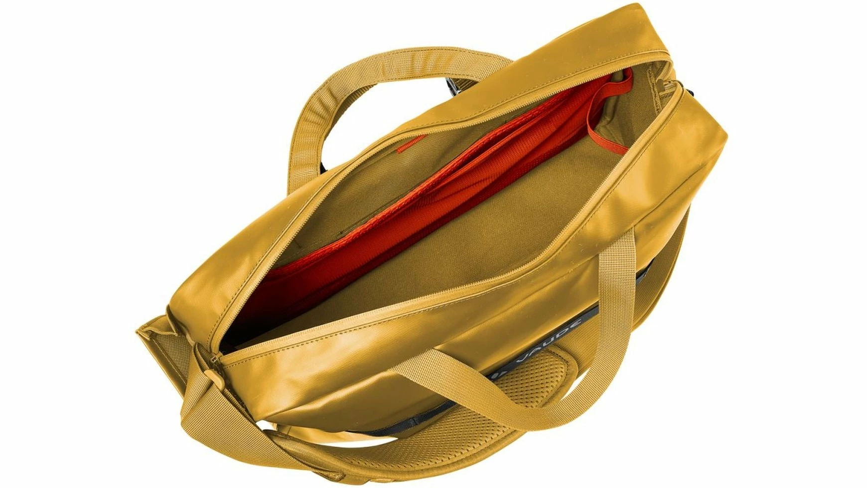 Aktentasche und Fahrradtasche in einem – diese wandelbare Bürotasche lässt sich mit einem Handgriff am Fahrrad-Gepäckträger mittels einer Plug-and-Ride-Schiene an- und abmontieren. Perfekt also für den Commuter-Alltag und auch bequem zu tragen, wenn Mann oder Frau auch zu Fuß unterwegs ist – hierfür wird die Schiene einfach nur in dem dafür vorgesehenen Seitenfach aufbewahrt. Auch die Fächeraufteilung des Mineo Commuter Briefcase 17 ist durchdacht: Handy und andere Kleinigkeiten verschwinden im hinteren Reißverschlussfach; im vorderen Fach können Zeitung, Block und Snack schnell verstaut werden und im großen Reißverschluss-Hauptfach finden ein 15,6″ Laptop, Unterlagen und sogar ein ganzer Ordner locker Platz. Ein innenliegender Flaschenhalter hält das Getränk kippsicher an Ort und Stelle und weitere Ordnungshelfer wie Stifte- und Schlüsselhalter sorgen für schnelle Auffindbarkeit. Über die multifunktionelle und mit reflektierenden Elementen bedruckte Daisy Chain (Befestigungsschlaufen) kann die Tasche weiter beladen oder auf einen Trolley aufgesteckt werden. Das robuste Material ist PVC-frei, schmutzabweisend und trotzt den Widrigkeiten des Stadtalltags. Als Mitglied mit Leader Status bei der unabhängigen Organisation Fair Wear engagiert sich VAUDE für faire Arbeitsbedingungen und faire Löhne. Das VAUDE Green Shape-Label steht für ein umweltfreundliches, funktionelles Produkt aus nachhaltigen Materialien. Zudem ist dieses Produkt klimaneutral: Die Emissionen aus Materialien, Herstellungsprozess und Versand wurden ganzheitlich ermittelt und systematisch reduziert. Aktuell nicht vermeidbare Emissionen wurden vollständig über die unabhängige Non-Profit-Organisation „myclimate“ kompensiert.