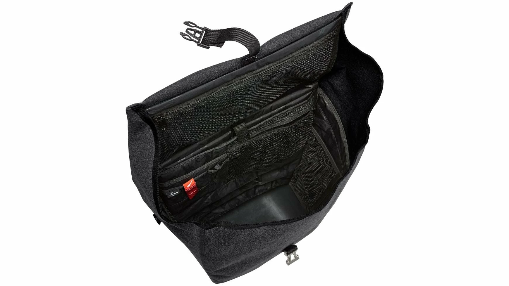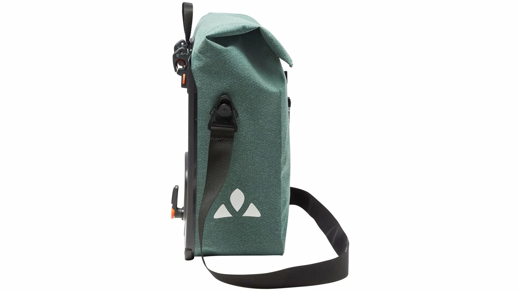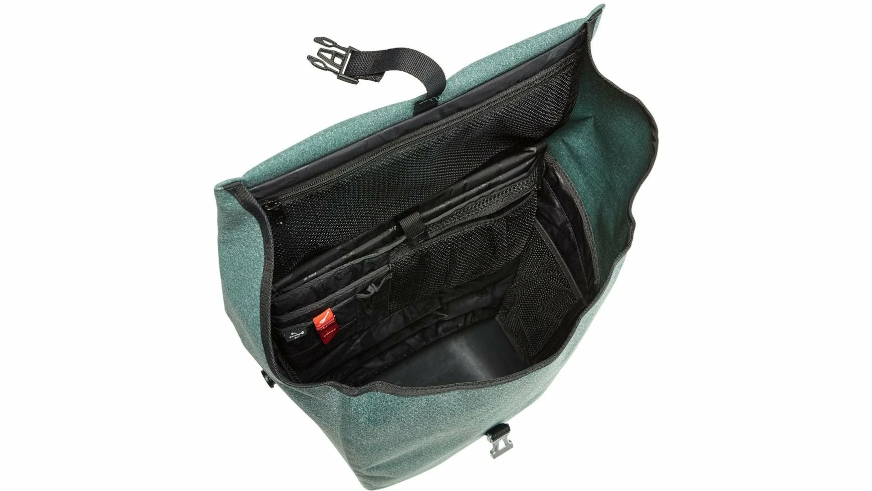 Umweltfreundlich und durchdacht – die stylische, wasserdicht verschweißte ReCycle Commute Single ist unser durch und durch nachhaltiger Alltagsbegleiter für Radpendler! Satte 22 l Volumen und die umfangreiche Innenausstattung mit separatem Laptopfach verstauen gut organisiert alles, was man im Stadtalltag braucht: Laptop bis 13,3″, Wechselbekleidung, Jacke, Snack und Unterlagen. Kleinere Utensilien wie Handy, Geldbeutel und Schlüssel finden in den Zusatzfächern Platz. Durch die ausgesteifte Seitenwange kann die Tasche kippsicher abgestellt werden. Die Rückenplatte besteht aus recycelten Kunststoffverpackungen: Hierbei wird in einem innovativen Recyclingverfahren neuer, langlebiger Rohstoff erzeugt. Die dadurch äußerst stabile Rückenplatte wurde mit dem leicht bedienbaren QMR 2.0-System ausgestattet, damit die Tasche mit einem Handgriff an- und abgemacht und zudem wahlweise rechts oder links am hinteren Gepäckträger befestigt werden kann. Die Befestigung ist über einfach bedienbare Handrädchen justierbar und passt somit auf jeden Gepäckträger bis zu einem Durchmesser von 16 mm. Mit dem abschließbaren QMR 2.0 Befestigungssystem kann die Tasche sicher am Fahrrad verriegelt werden. Sie ist zudem mit reflektierenden Elementen bedruckt. Im Lieferumfang enthalten ist ein Schultergurt für den Transport zu Fuß – für Umweltfreunde ist diese Radtasche somit das Nonplusultra für den täglichen Weg zur Arbeit. Dieses Produkt ist klimaneutral: Die Emissionen aus Materialien, Herstellungsprozess und Versand wurden ganzheitlich ermittelt und systematisch reduziert. Aktuell nicht vermeidbare Emissionen wurden vollständig über die unabhängige Non-Profit-Organisation „myclimate“ kompensiert. Lieferumfang: 1 Tasche