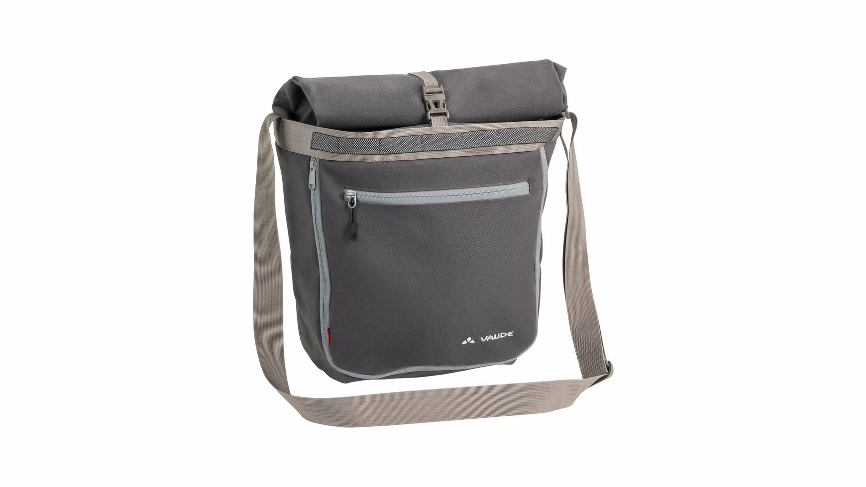 Urbane Shoppingtasche zum Radfahren Mit dem Rad zum Einkaufen? Kein Problem! Mit dieser Tasche machst Du auf jedem Markt eine gute Figur. Das große, einfachaufzurollende Hauptfach bietet Dir genügend Stauraum für Einkäufe, Sportklamotten oder Freizeitutensilien. Durch den fest angebrachten Umhängegurt und einen extra Reißverschluss, welcher das Volumen erweitert, ist die Tasche auch für dieetwas ausgedehnteren Shoppingtouren geeignet. Im vorderen Teil der Tasche befindet sich zusätzlich eine Tasche für DeineWertgegenstände. An dem reflektierenden Schlaufenband, welches Dir auch bei Nacht im Straßenverkehr Sichtbarkeit verleiht, kannst Du bei Bedarf kleinere Dinge mit einem Karabiner anbringen. Eine integrierte Regenhülle sorgt zudem dafür, dass Deine Einkäufe auch bei Regen trocken zu Hause ankommen. Dieses Produkt ist mit Eco Finish umweltfreundlich wasserabweisend ohne Fluorcarbone (PFC) hergestellt.