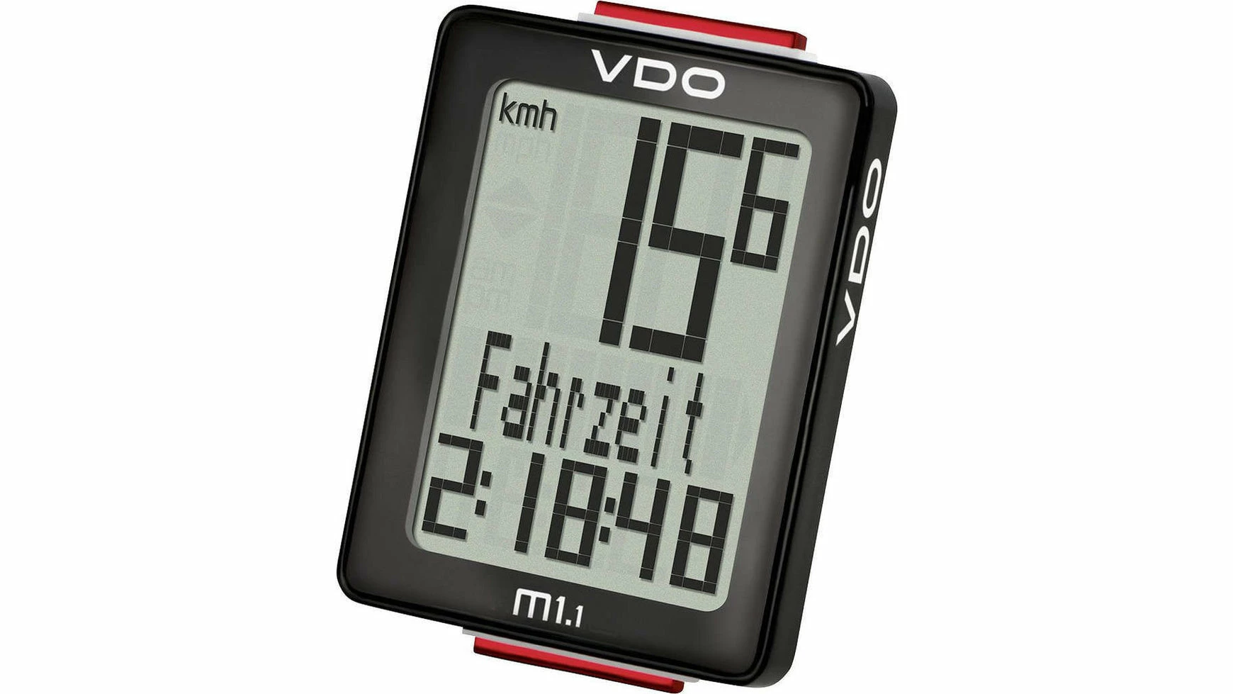 Der neue VDO M 1.1. Der VDO M1.1 legt seinen Fokus auf die wesentlichen Fahrradfunktionen, zwei davon sind immer in der Displayanzeige zu sehen. Alle wichtigen Funktionen und Features bleiben so stets im Blick. Bestens geeignet für diejenigen, die keinen großen Schnickschnack wollen. Alle Basisfunktionen an Bord. Größte Stärke des neuen VDO M1.1 ist neben seinem außergewöhnlich großen Display die geradlinige und schnörkellose Funktionsweise. Für Puristen auf das Wesentliche reduziert, steht der VDO M1.1 für absoluten Fahrspaß und alle grundlegenden Fahrradfunktionen sind integriert. Immer zwei Werte im Focus Der VDO M1.1 bietet durch sein auffallend großes Display ein einfaches Ablesen während der Fahrt. Hier ist genug Platz für zwei Werte mit besonders großen Ziffern. Sie lassen sich extrem schnell erfassen, damit der Blick ganz nah an der Route bleibt. Kein Datenverlust bei Batteriewechsel. Selbst bei völlig leerer Batterie gehen niemals Daten und Einstellungen verloren. Der M1.1 speichert bereits vorher, dies zeichnet das Data-Safe-Prinzip von VDO aus. Einfach die Batterie wechseln, kein mühsames erneutes Einstellen des Fahrradcomputers ist nötig. Weitere Funktionen Der M1.1 ist vielseitig und so mit vielen weiteren Features ausgestattet. Dazu gehören die Batterie warnung für Basisgerät oder die Volltextanzeige. Das Display. Klare Aufteilung für einen sicheren Blick: Das Anzeigefeld hat eindeutig definierte Bereiche und viel Raum für die Ausgabe der jeweiligen Funktionswerte samt beschreibenden Volltext. Tastenzuordnung. Minimalprinzip bei den Tasten: Mit so wenigen Knöpfen wie möglich effektiv die Funktionen steuern. Für ein unkompliziertes Bedienen ohne Ablenkung.