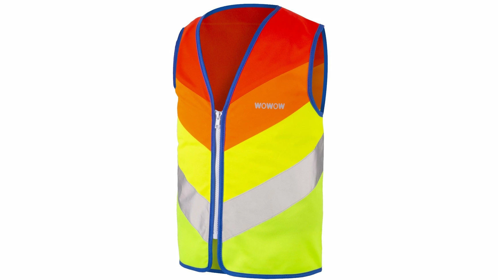 Die Sicherheitsweste wird aus einem Mix aus gelbem, orangem und rotem fluoreszierendem Material gefertigt und verfügt über reflektierende Streifen vorne wie hinten. Vorne befindet sich ein Reißverschluss und es gibt ein Schild, wo man den Namen des Kindes eintragen kann, damit man sie nicht verwechselt. Auf der Rückseite ist zudem eine Halteschlaufe angebracht, an der man ein Blinklicht befestigen kann, was die Sichtbarkeit zusätzlich verstärkt. Die Reflexweste gilt als Warnwesten für den Freizeiteinsatz.